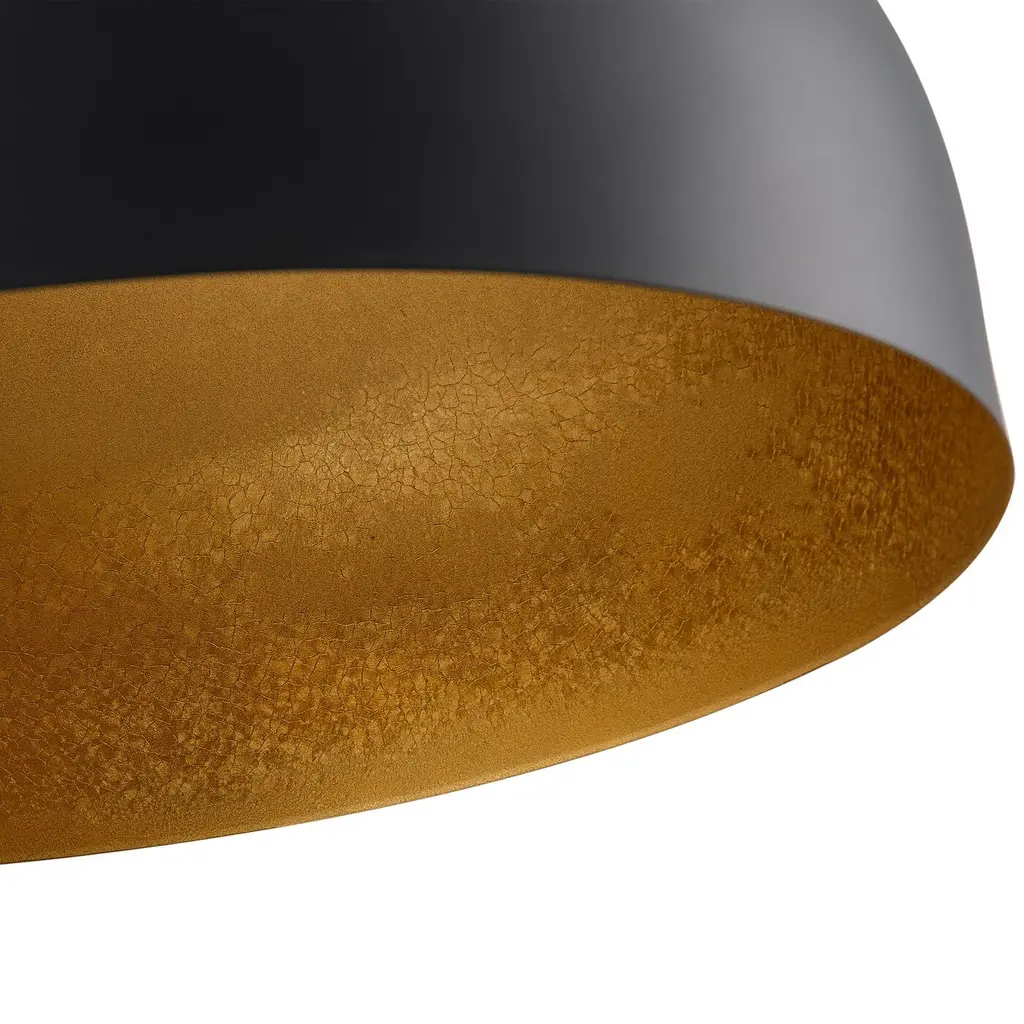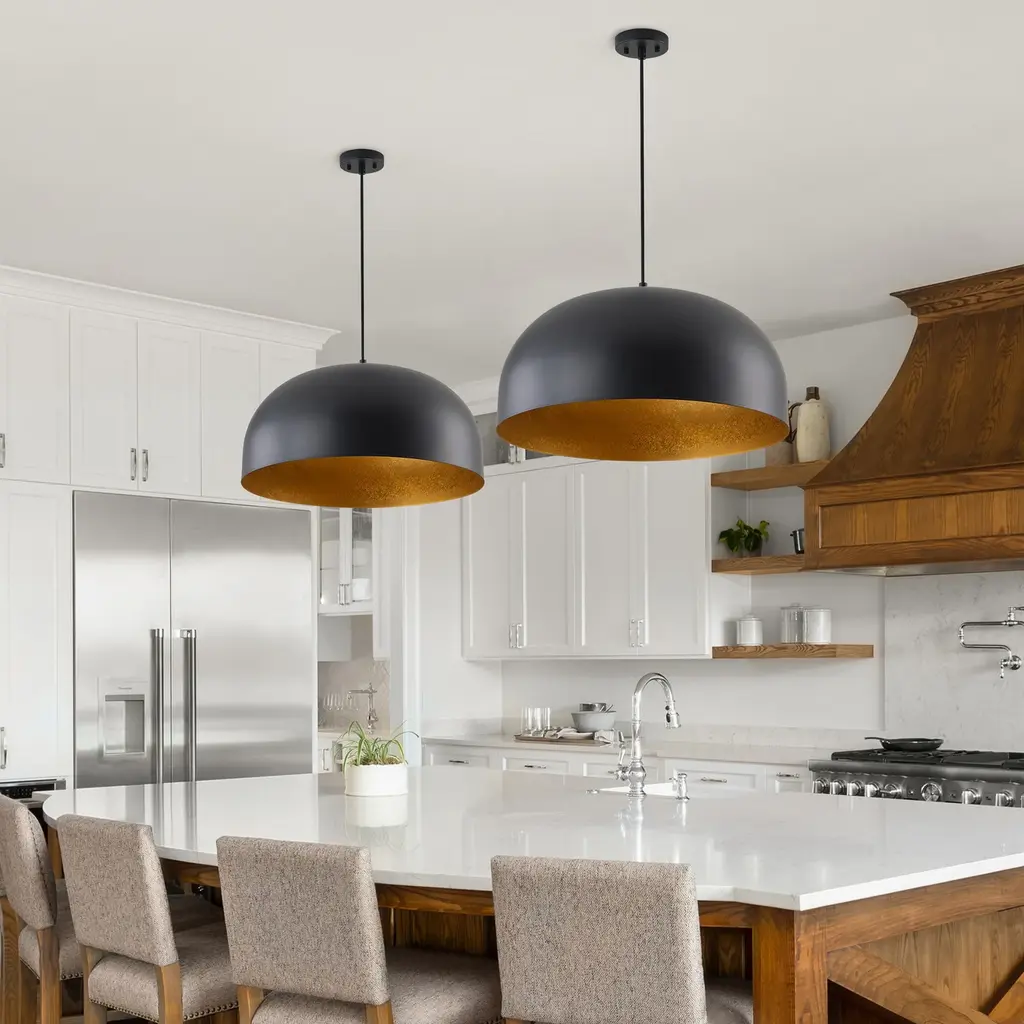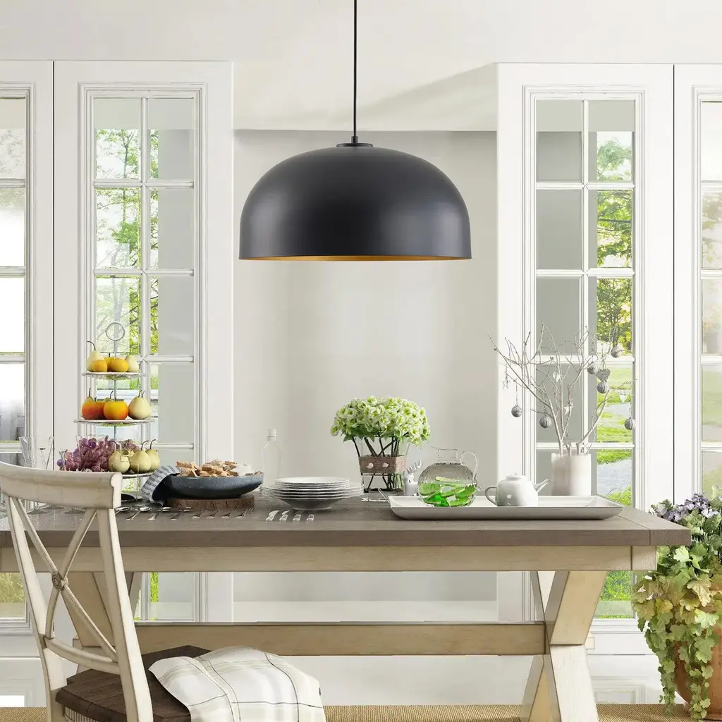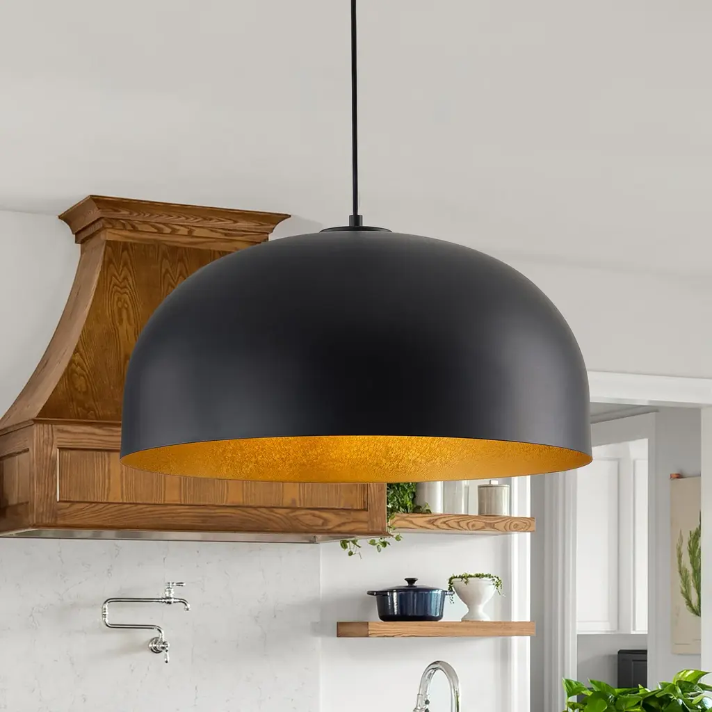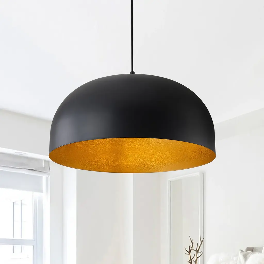 Farmhouse Matte Black 1-Light Gold Leaf Inside Pendant Light With Metal Shade - Black