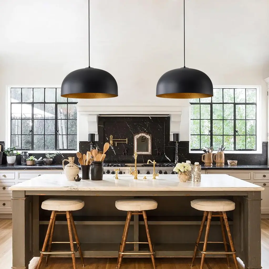 Farmhouse Pendant Light: The pendant light is a combination of industrial and vintage, creates a wonderful new look, and inspires you to create the room of your dreams. Get 2 packs recommended, perfectly fits for kitchen island. Also a great choice for a dining room, bar, kitchen, restaurant, or cafe.Quality Assurance: High-quality iron materials were used to craft the pendant light. All products in the factory have to undergo rigorous safety monitoring, to ensure quality and safety, which is beautiful, corrosion-resistant, and durable for a long time.Easy to Install: Don't worry about the installation difficulty, we will attach the installation instructions to you, with clear installation instructions, the operation can be completed quickly. If you have any problems please feel free to contact us.ETL Listed & Bulb Requirement: ETL Listed for your safety. The pendant light is a built-in standard E26 socket, suggest using the dimmable E26*1 base bulbs (Max 60W, 120V), it could be a fully dimmable and compatible dimmer switch. Bulbs and dimmer switch not included.Perfect Decor: This pendant light device is not only lighting but also a perfect decoration for a bar, cafe shop, kitchen, restaurant, dining room, living room, porch, entryway, corridor, garage, or other space that needs a rustic or industrial style to your room, offer you a good decorative effect.