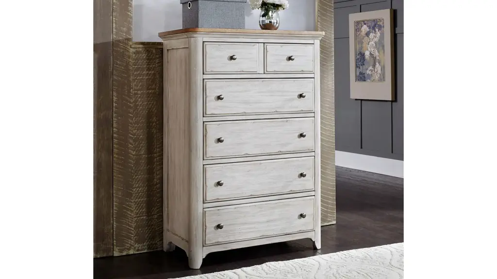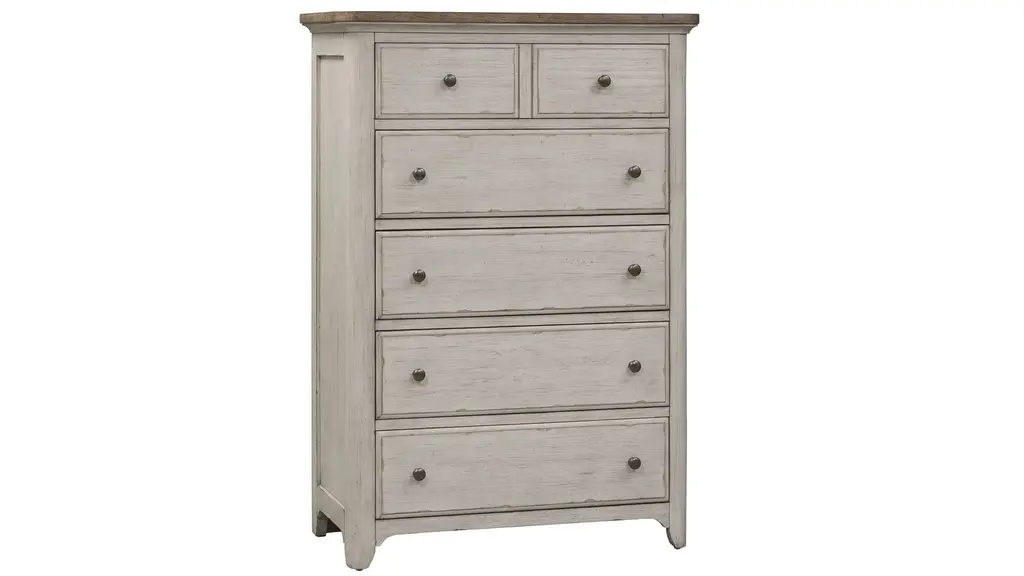 Vintage can refer to "a classic," add the relaxed style of the Farmhouse Reimagined bedroom chest and you create a classic look with a casual feel. Looks that easily work in today's homes. Style uncompromised with comfort abounding. Farmhouse reimagined offers cottage styles you love in a heavily distressed finish that will work from the beach to the mountains to an industrial loft.