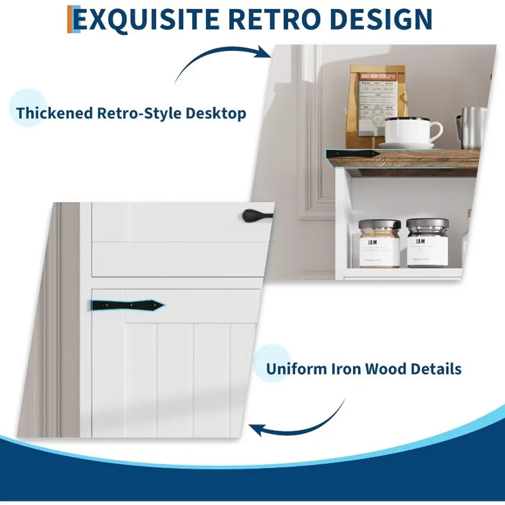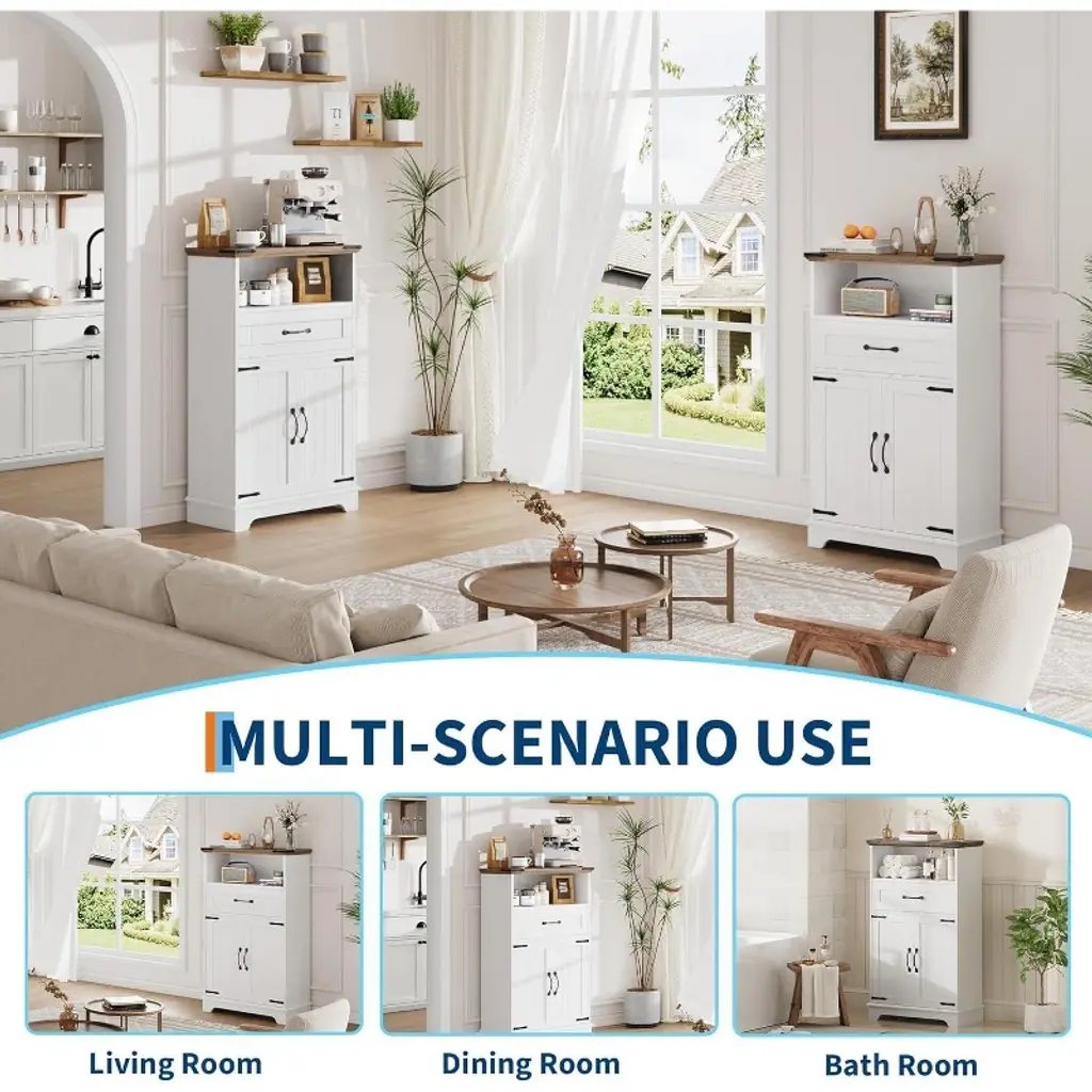 Farmhouse Storage Cabinet Set Of 2 - White Freestanding Cabinet With Doors & Drawers For Bathroom/kitchen/living Room