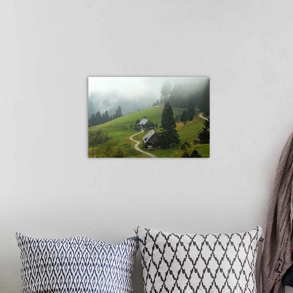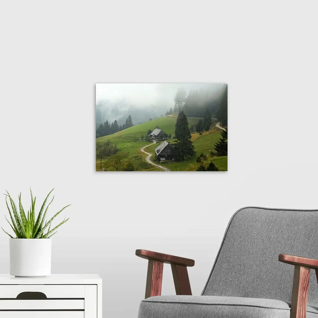 Farmhouses in fog, Muchenland, Black Forest, Baden-Wurttemberg, Germany wall art for home and office decor. Discover canvas art prints, photos, mural, big canvas art and framed wall art in GreatBigCanvas.com's varied collections.