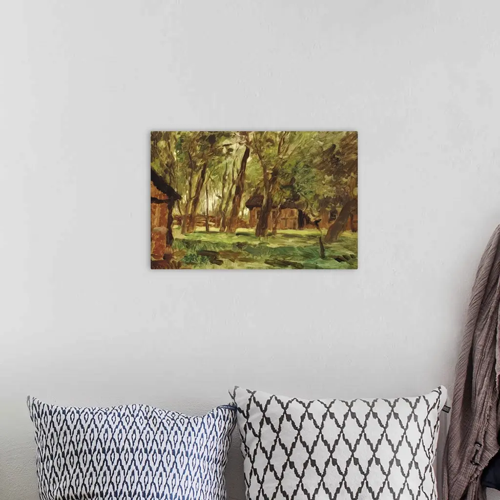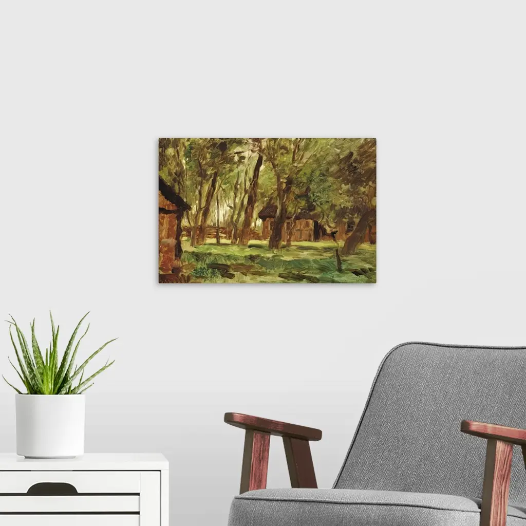 XKH191665 Farmstead under Trees (oil on paper) by Herbst, Thomas Ludwig (1848-1915); oil on canvas; 36x52 cm; Hamburger Kunsthalle, Hamburg, Germany; German, out of copyright