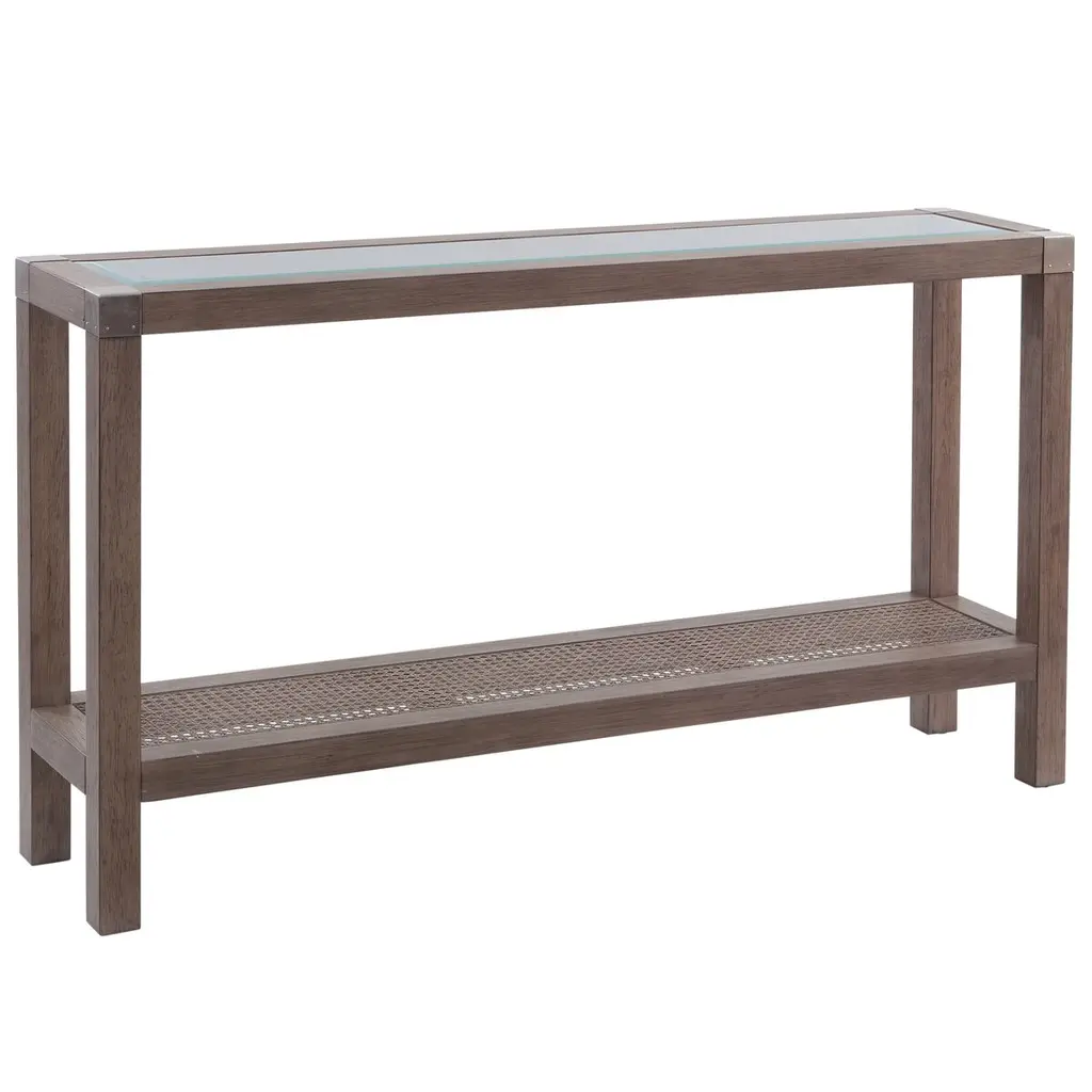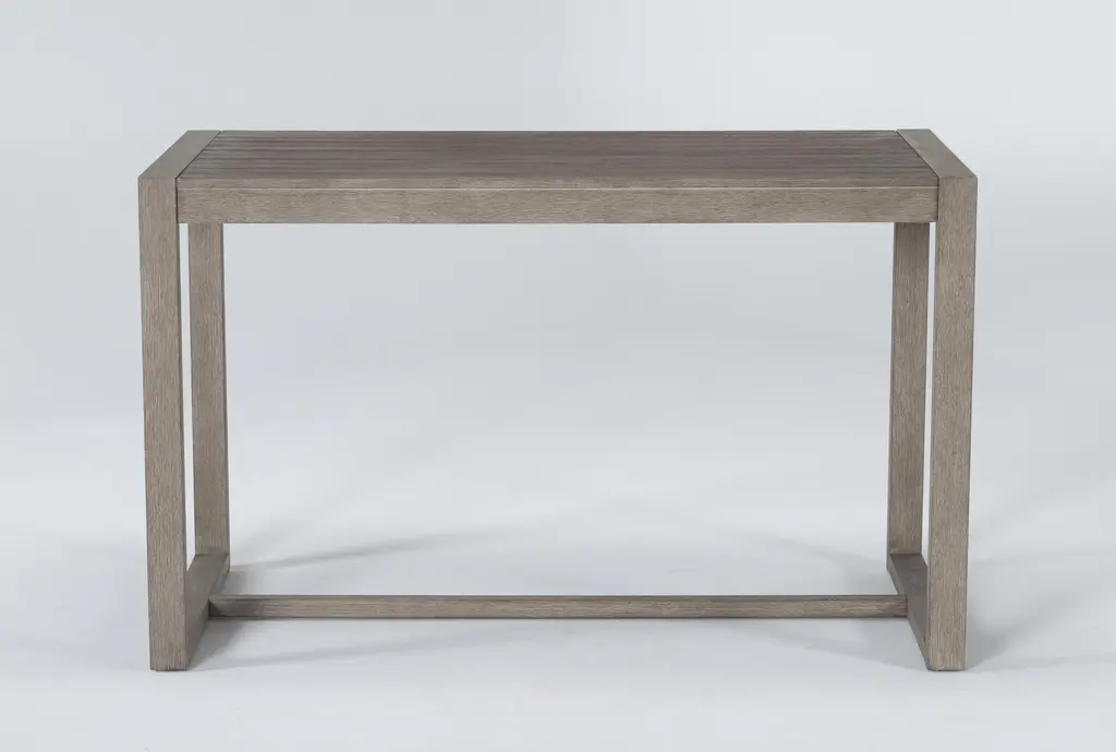 Built to endure the elements, this outdoor console table is crafted with a powder-coated aluminum frame in a rich driftwood finish.