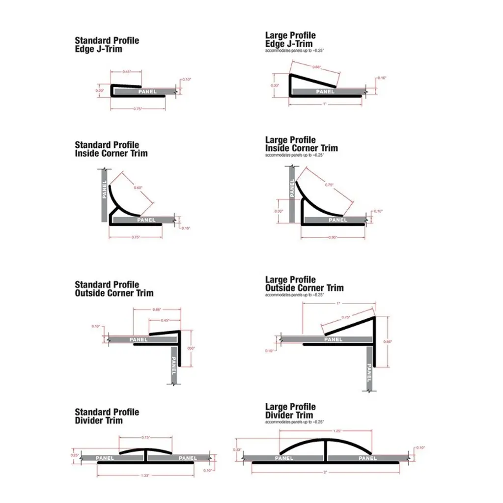 The FASÄDE 47 in. Decorative Vinyl Divider Trim is made from durable PVC and is easy to cut for installation. This trim is a great way to add an attractive finishing touch when needed to the seam of wall panels. These trim colors allow for coordination with other Fasade products to give your design project a stylish look.