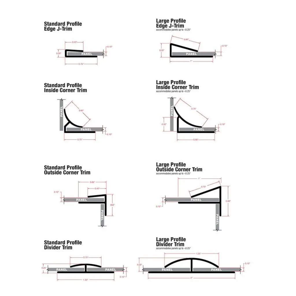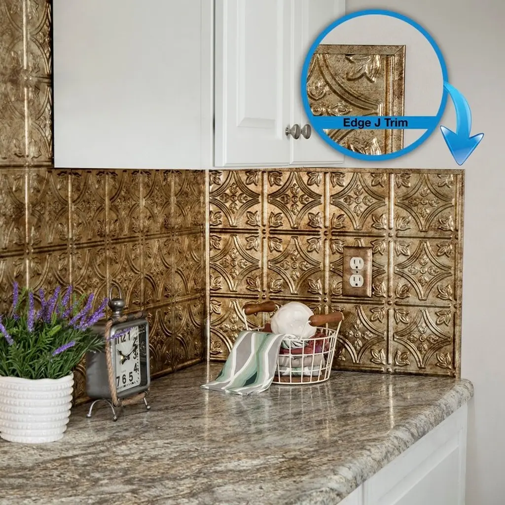 The FASÄDE 47 in. Decorative Vinyl J Trim is an attractive way to hide cut edges or the end of runs on backsplashes, wall panels and ceiling panels. It features PVC construction for great durability. This trim is easy to install and complements other FASÄDE products to help coordinate a new look for your home.