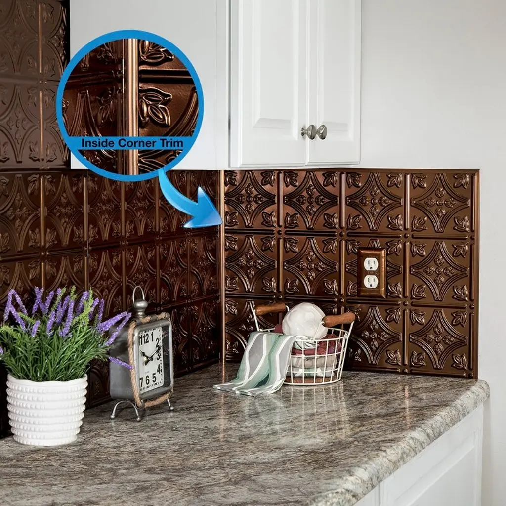 The FASÄDE 47 in. Decorative Vinyl Large Profile Inside Corner Trim is an attractive way to hide cut edges or the end of runs on backsplashes, wall panels and ceiling panels. It features PVC construction for great durability. This trim is easy to install and complements other FASÄDE products to help coordinate a new look for your home.