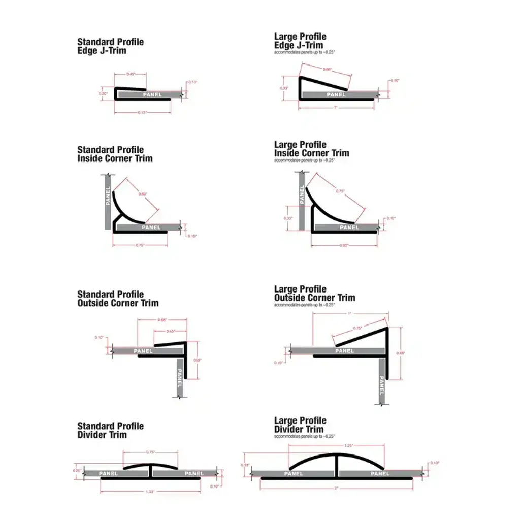 The FASÄDE 47 in. Decorative Vinyl Outside Corner Trim is made from durable PVC and is easy to cut for installation. This trim is a great way to add an attractive finishing touch to an outside corner on your backsplash or wall panel project. These trim colors allow for coordination with other Fasade products to give your design project a stylish look.