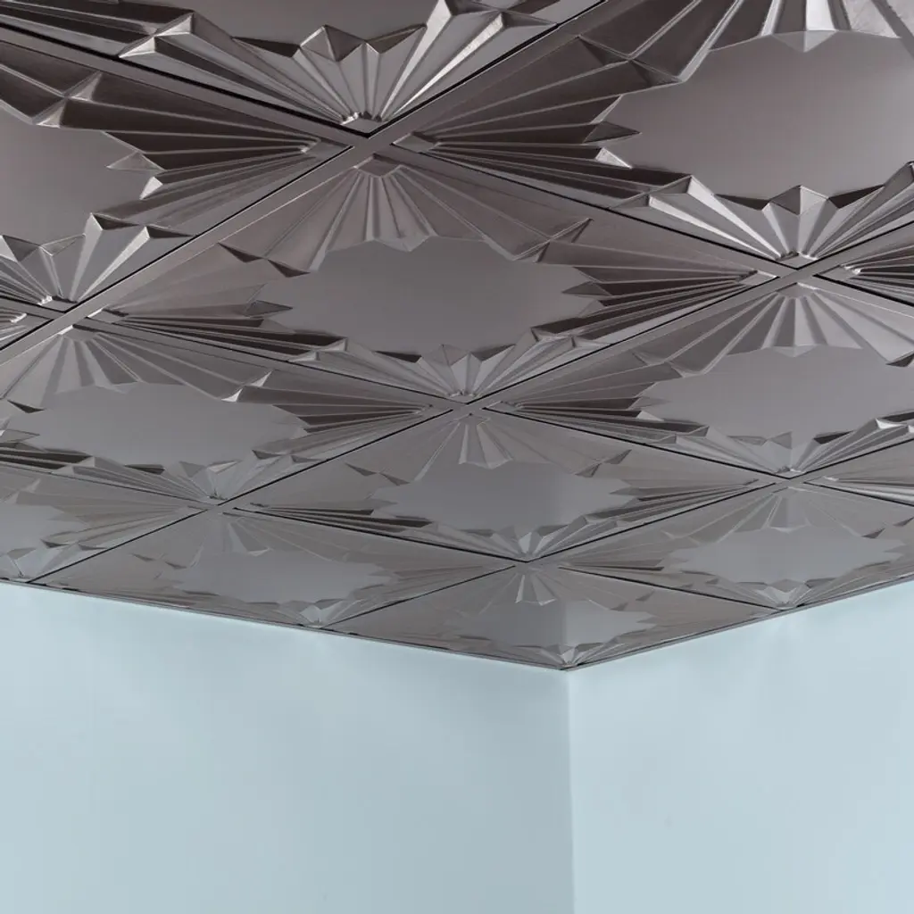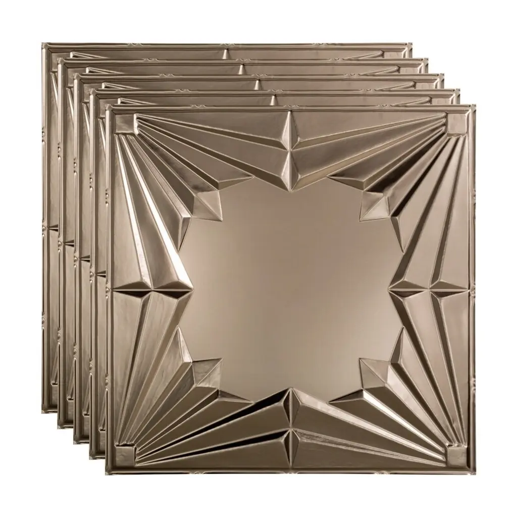 Fasade Art Deco Decorative Vinyl 2Ft X 2Ft Lay In Ceiling Tile In Brushed Nickel (5 Pack) - 5 Pack