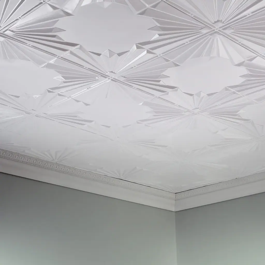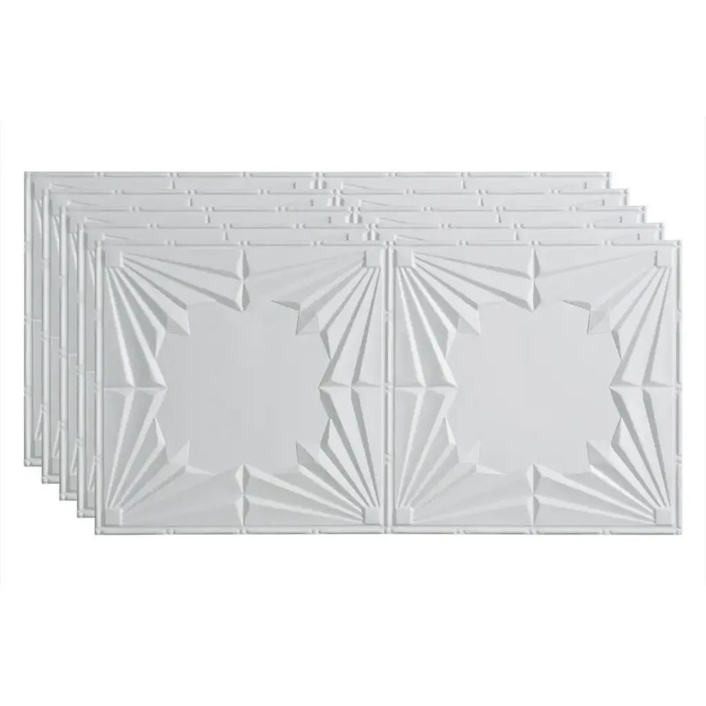 Fasäde Art Deco Decorative Vinyl 2Ft X 4Ft Glue Up Ceiling Panel In Matte White (5 Pack) - 5 Pack - Matte White