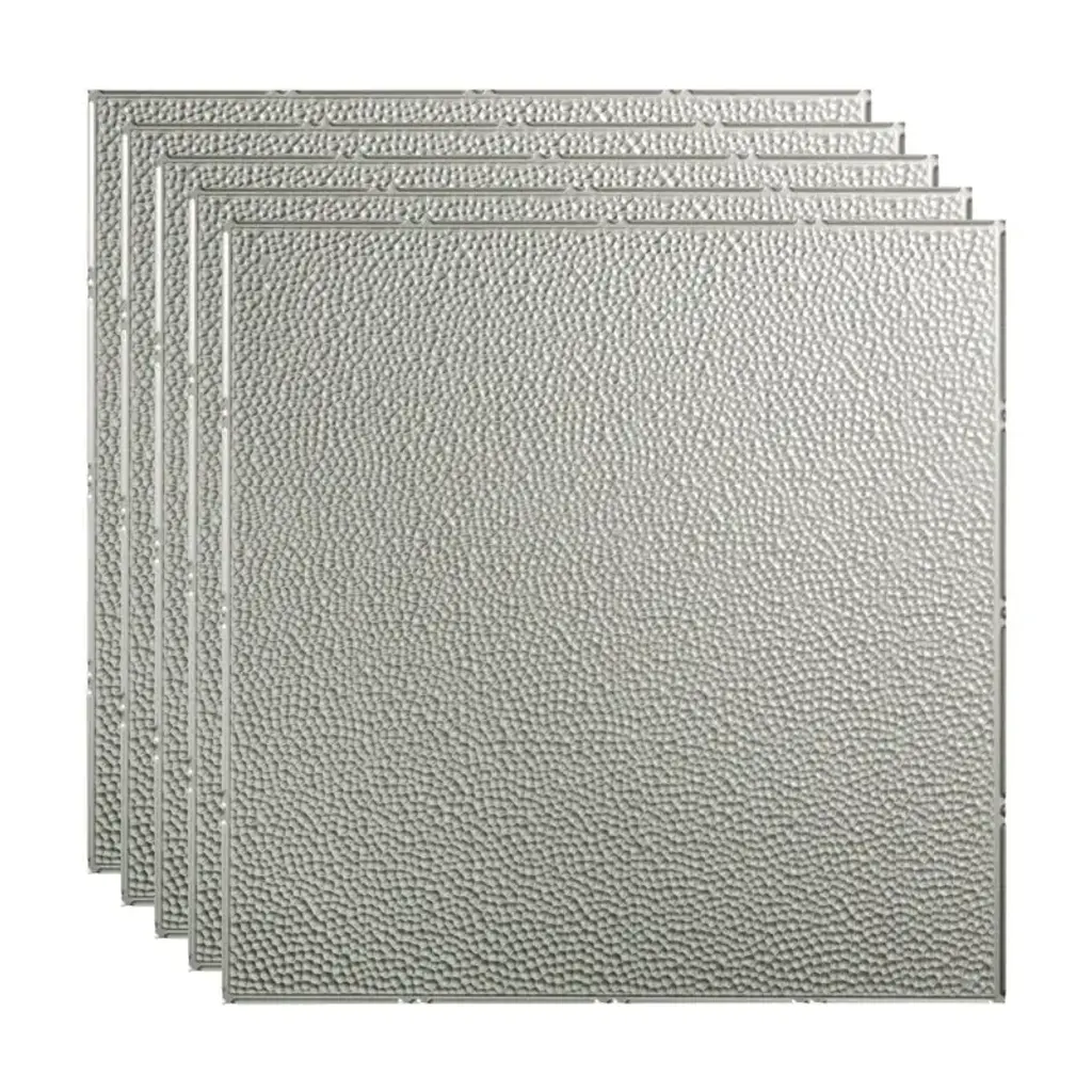 Fasäde Border Fill Decorative Vinyl 2Ft X 2Ft Lay In Ceiling Panel In Argent Silver (5 Pack) - 5 Pack - Argent Silver