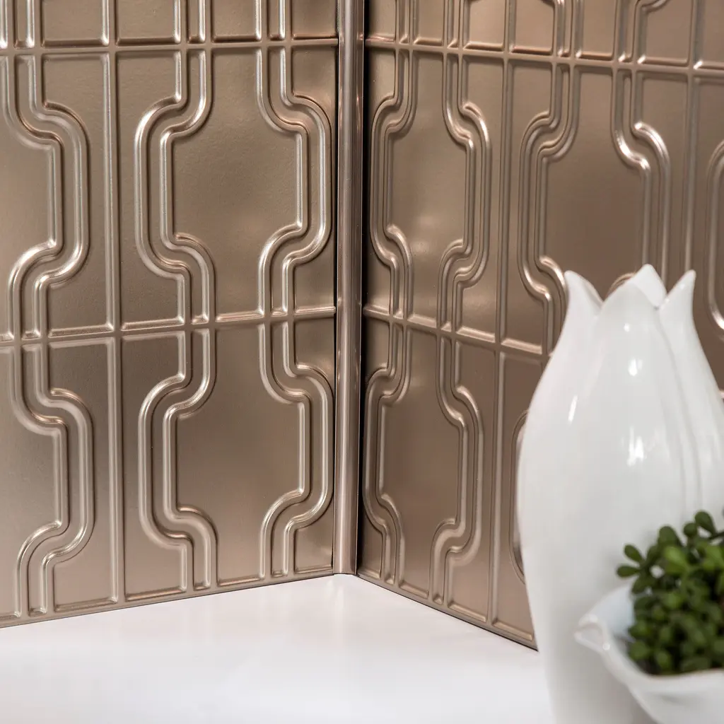 FASÄDE decorative vinyl backsplash panels are lightweight, flexible, and easy to install, allowing even the most novice DIY-ers to create beautiful and luxurious spaces in their homes! These versatile panels come in many different finishes and are easily cut to fit any size or shape area, giving you the power to update any room.