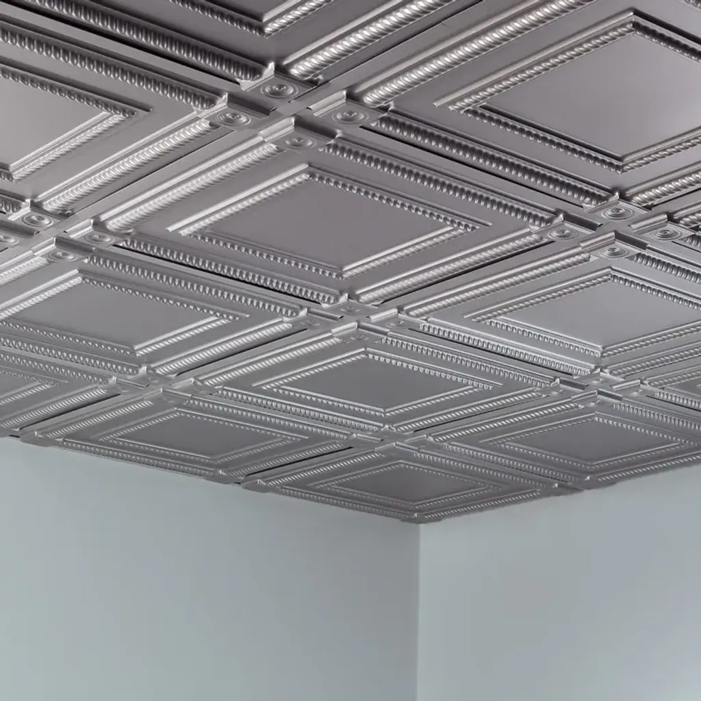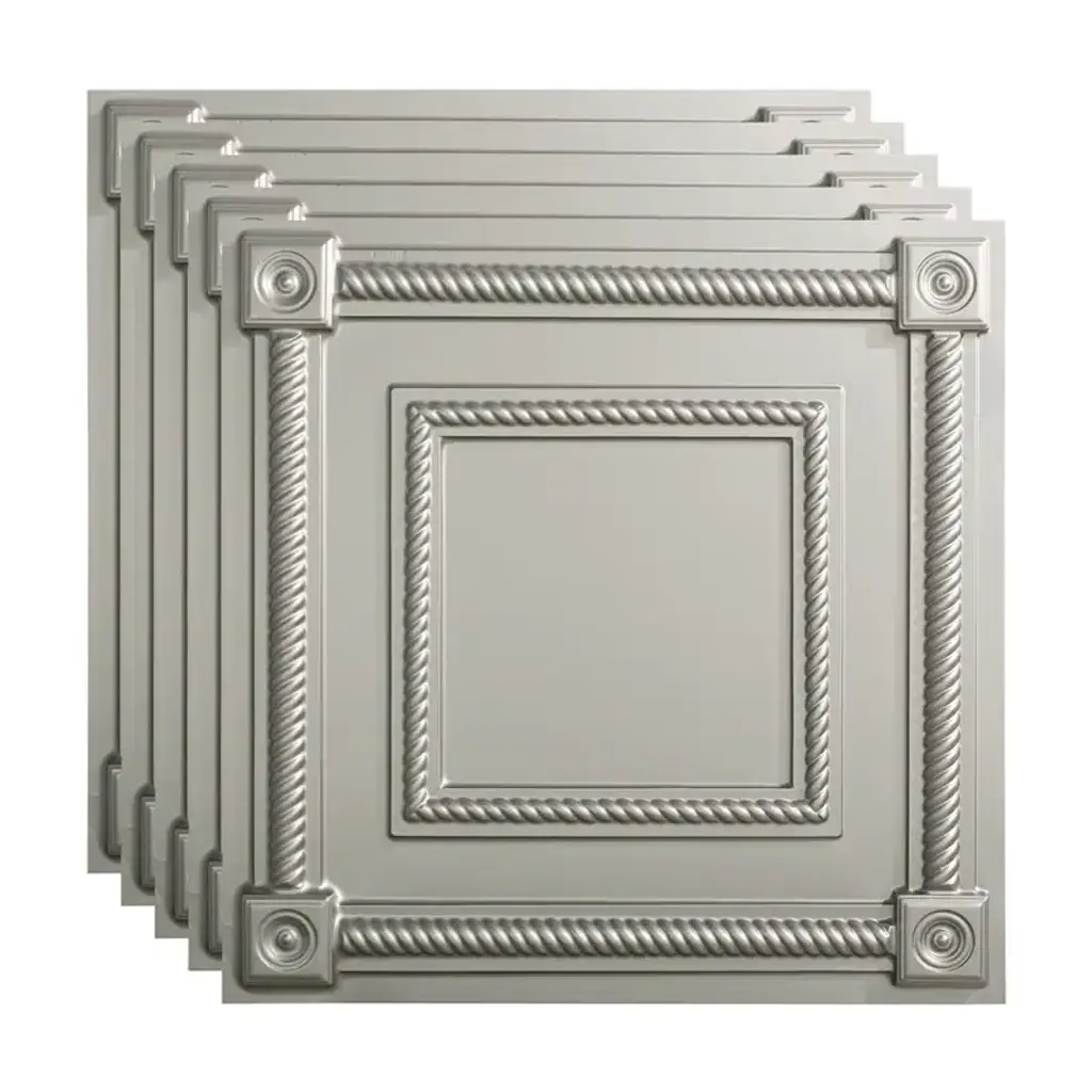 Fasäde Coffer Decorative Vinyl 2Ft X 2Ft Lay In Ceiling Panel In Argent Silver (5 Pack) - 5 Pack - Argent Silver