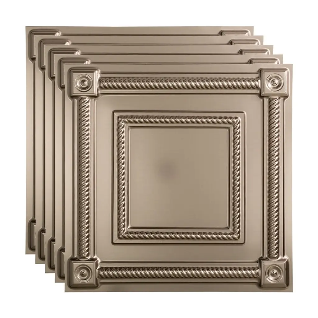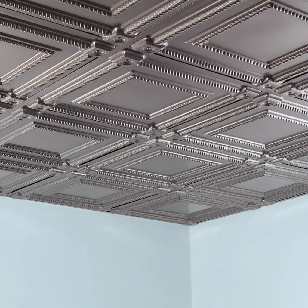 Fasäde Coffer Decorative Vinyl 2Ft X 2Ft Lay In Ceiling Panel In Brushed Nickel (5 Pack) - 5 Pack - Brushed Nickel