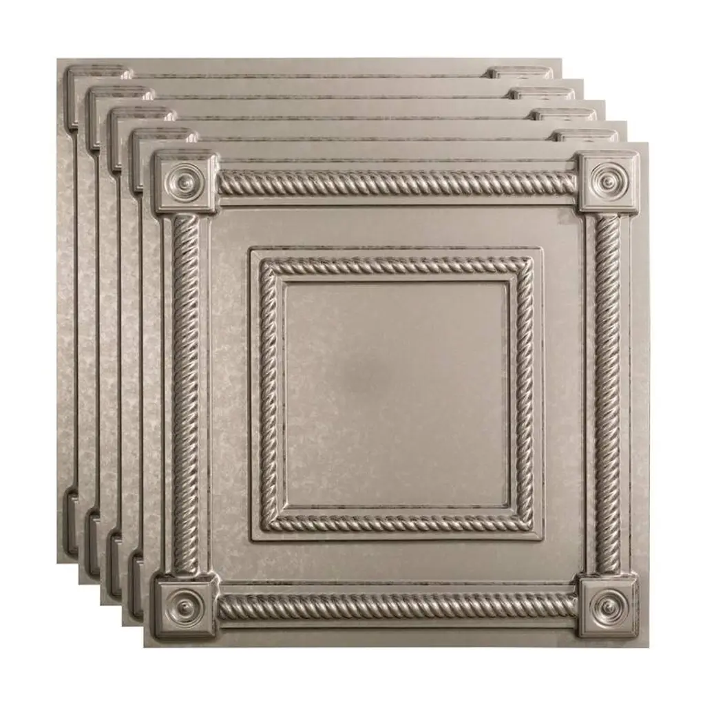 Fasade Coffer Decorative Vinyl 2Ft X 2Ft Lay In Ceiling Tile In Galvanized Steel (5 Pack) - 5 Pack