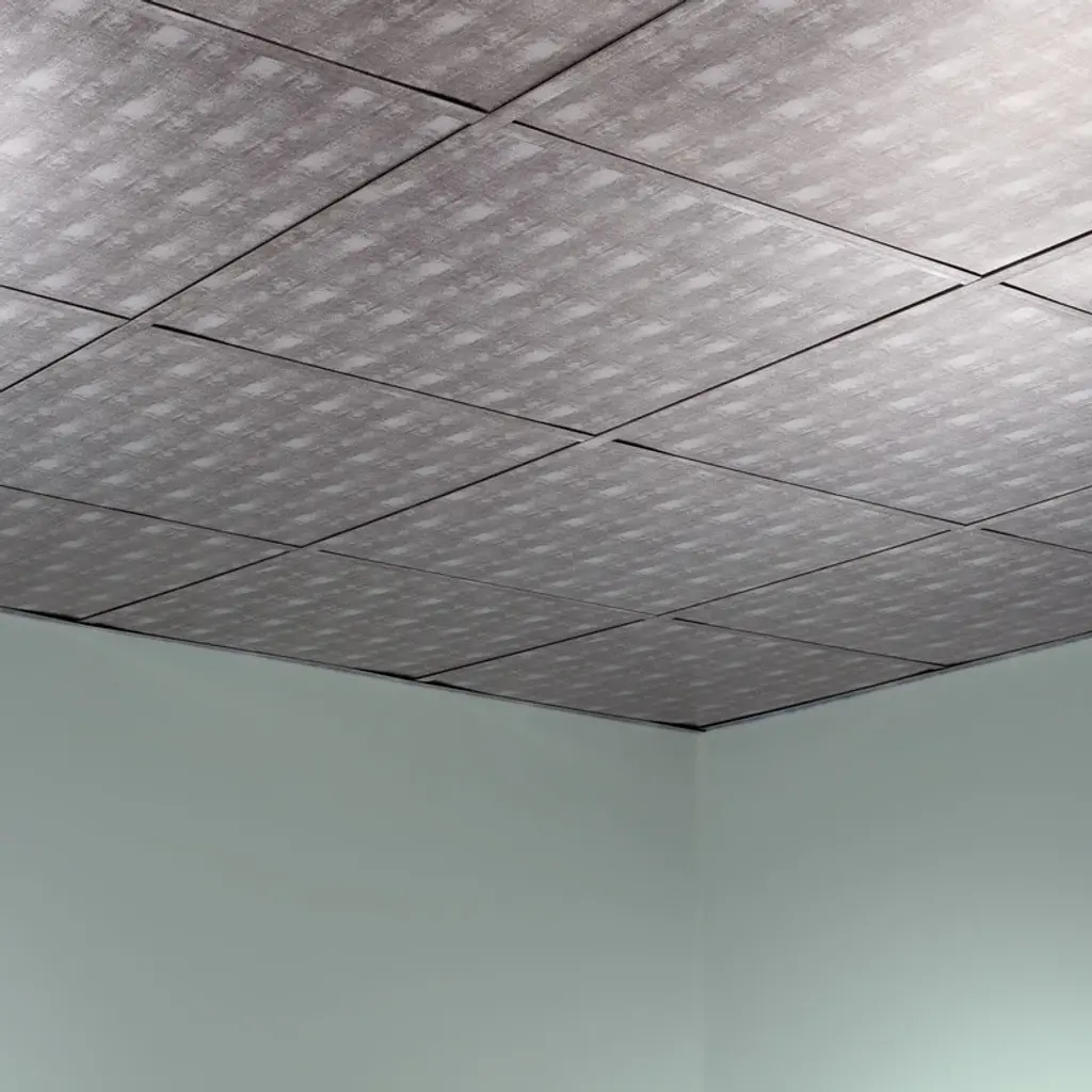 Fasäde Flat Decorative Vinyl 2Ft X 2Ft Lay In Ceiling Panel In Crosshatch Silver (5 Pack) - 5 Pack - Crosshatch Silver