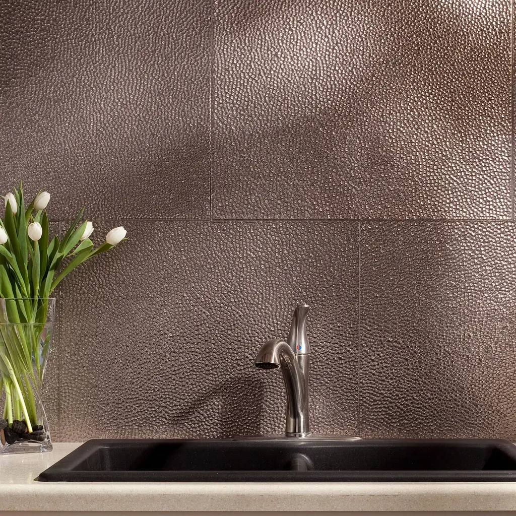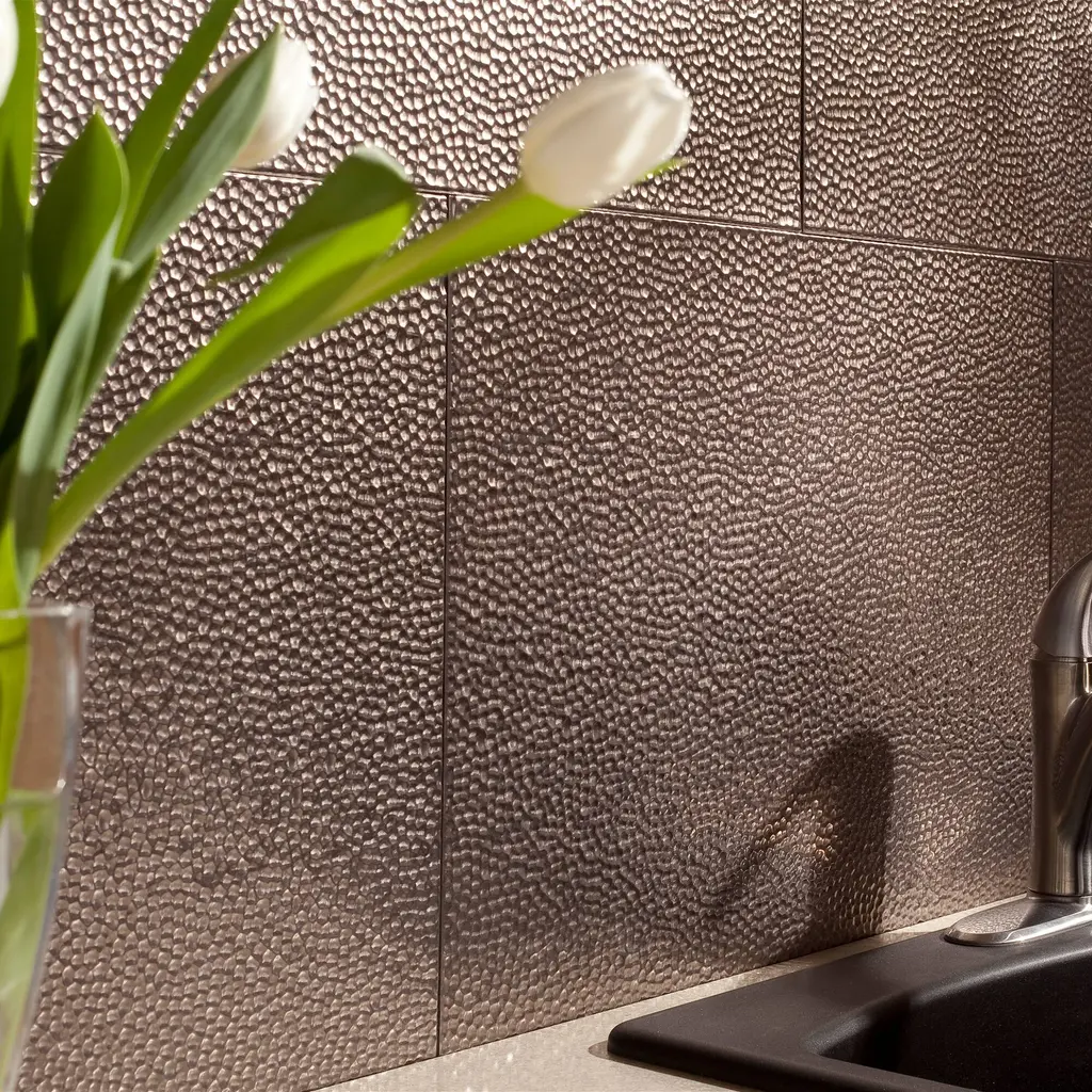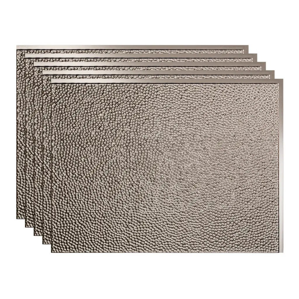 Fasäde Hammered Decorative Vinyl Backsplash Panel - 15 Sq Ft Kit - Brushed Nickel