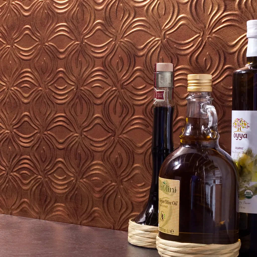 Fasäde Lotus Decorative Vinyl Backsplash Panel - 15 Sq Ft Kit - Antique Bronze