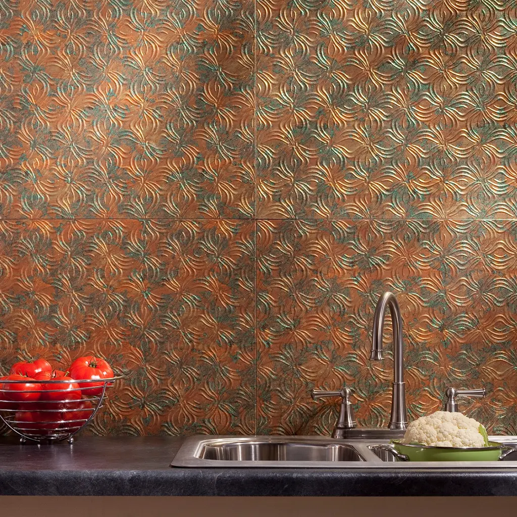 Fasäde Lotus Decorative Vinyl Backsplash Panel - 15 Sq Ft Kit - Copper Fantasy