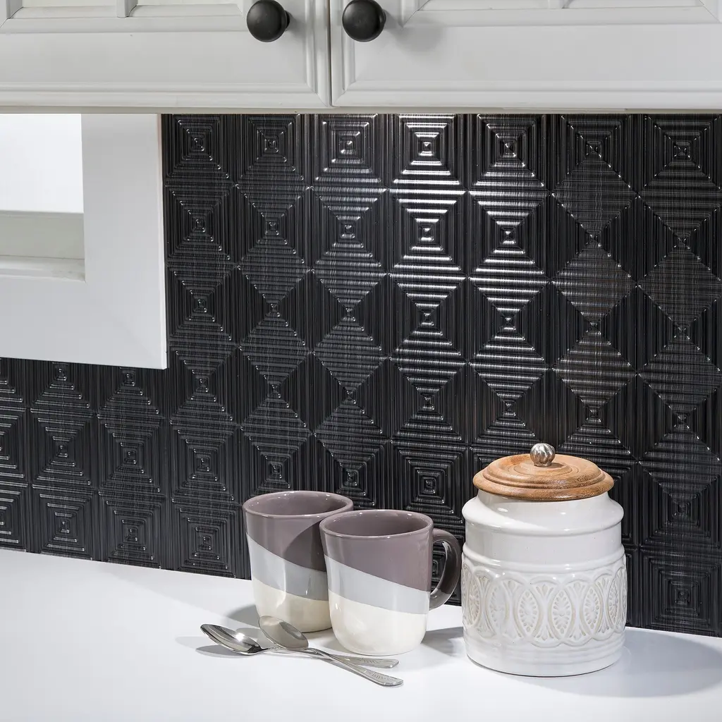 Fasäde Miniquattro Decorative Vinyl Backsplash Panel - 15 Sq Ft Kit - Brushed Onyx