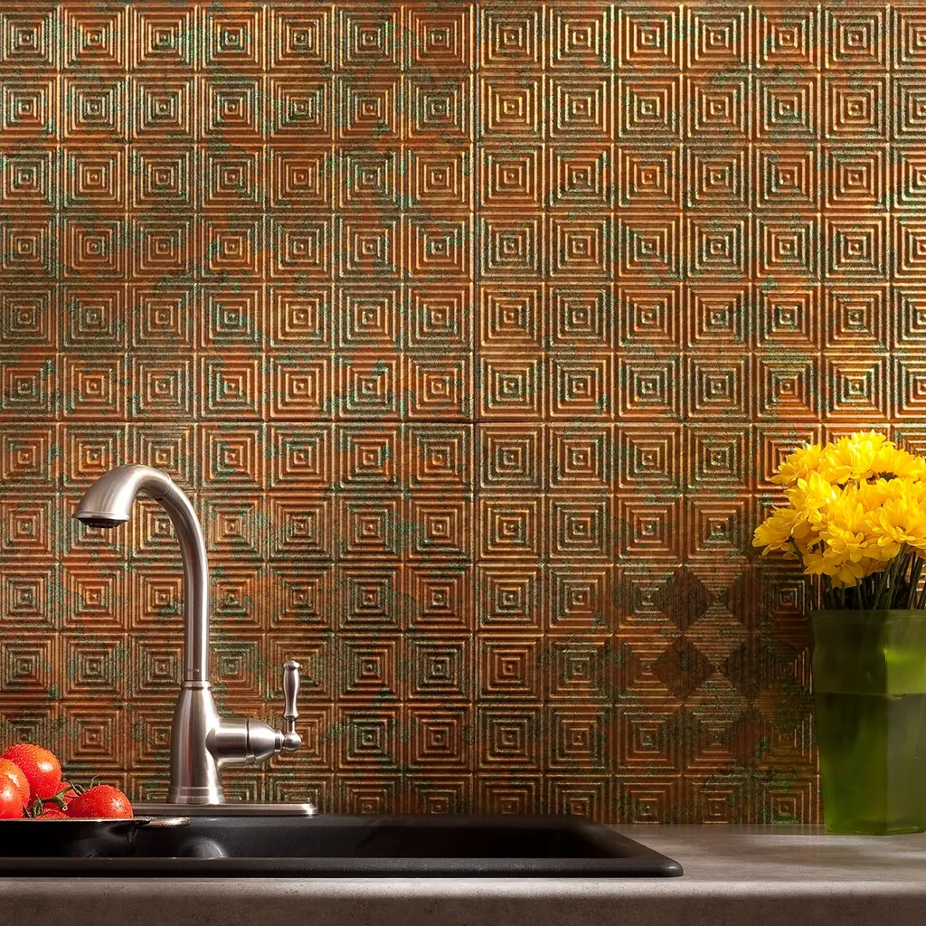 Fasäde Miniquattro Decorative Vinyl Backsplash Panel - 15 Sq Ft Kit - Copper Fantasy