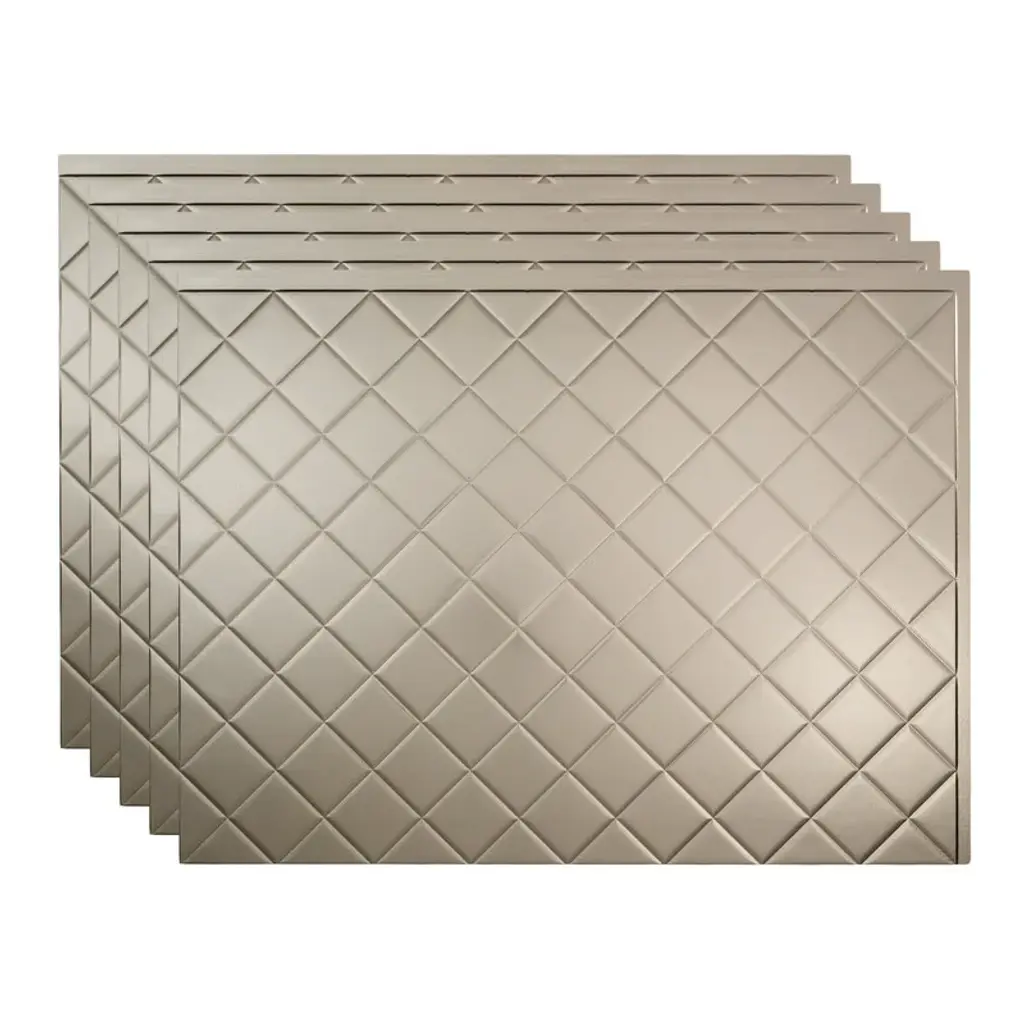 Fasade Quilted Decorative Vinyl 18in X 24in Backsplash Panel In Brushed Nickel - 5 Pack