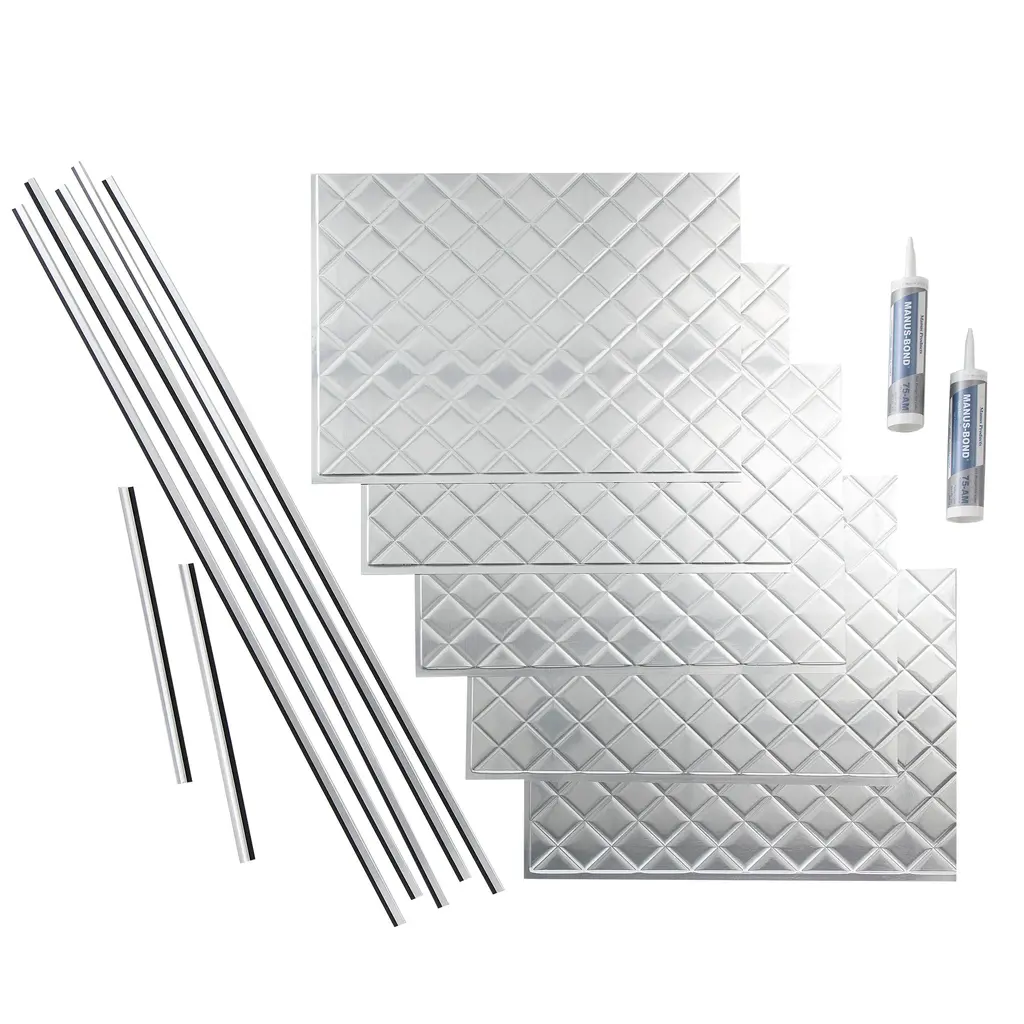Fasäde Quilted Decorative Vinyl Backsplash Panel - 15 Sq Ft Kit - Argent Silver