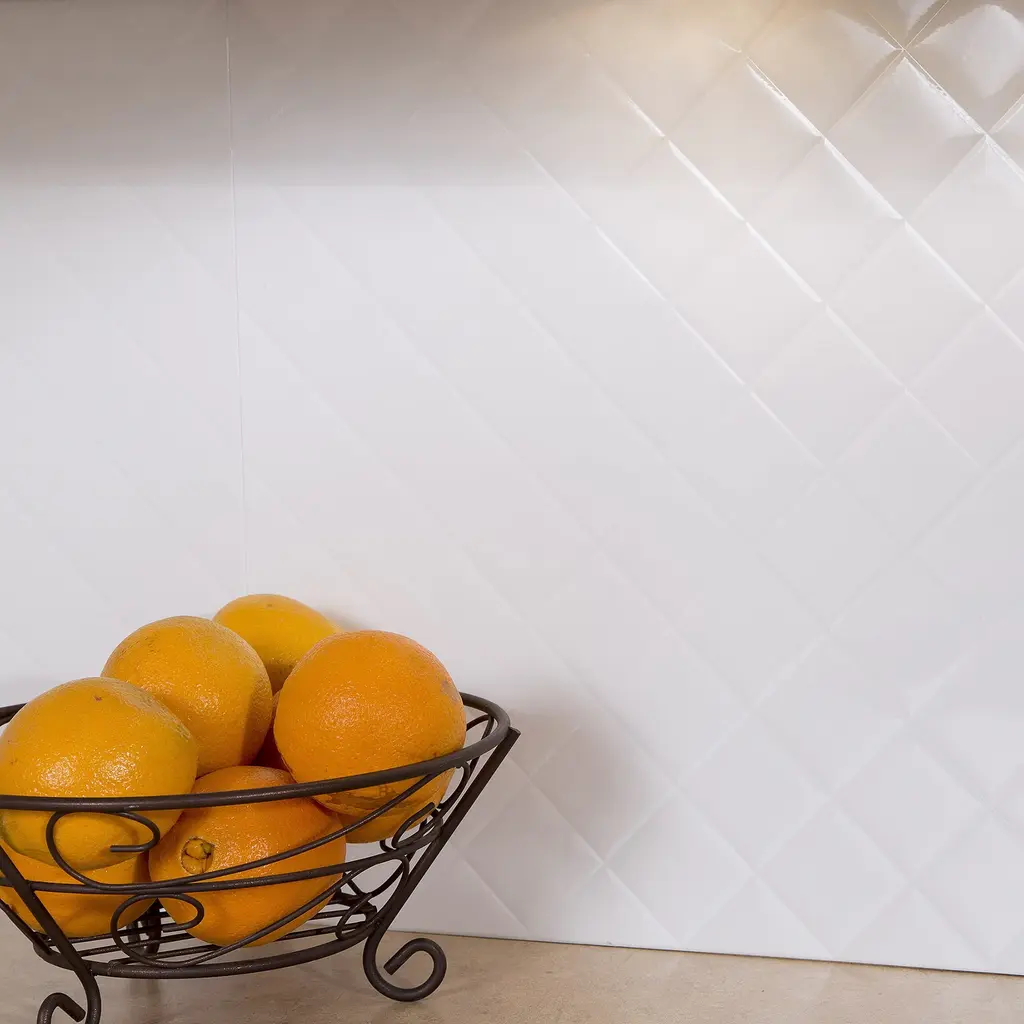 Elevate your kitchen or accent wall with Fasade Quilted Gloss White Backsplash. Our lightweight and flexible panels are effortless to install, perfect for DIY-ers. With waterproof and mold-proof features, our vinyl finishes make cleaning up a breeze. Choose from our variety of styles and colors that fit your unique décor theme. You won't regret selecting Fasade, even years down the road!Features: