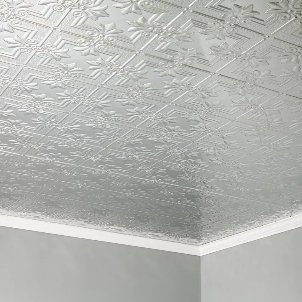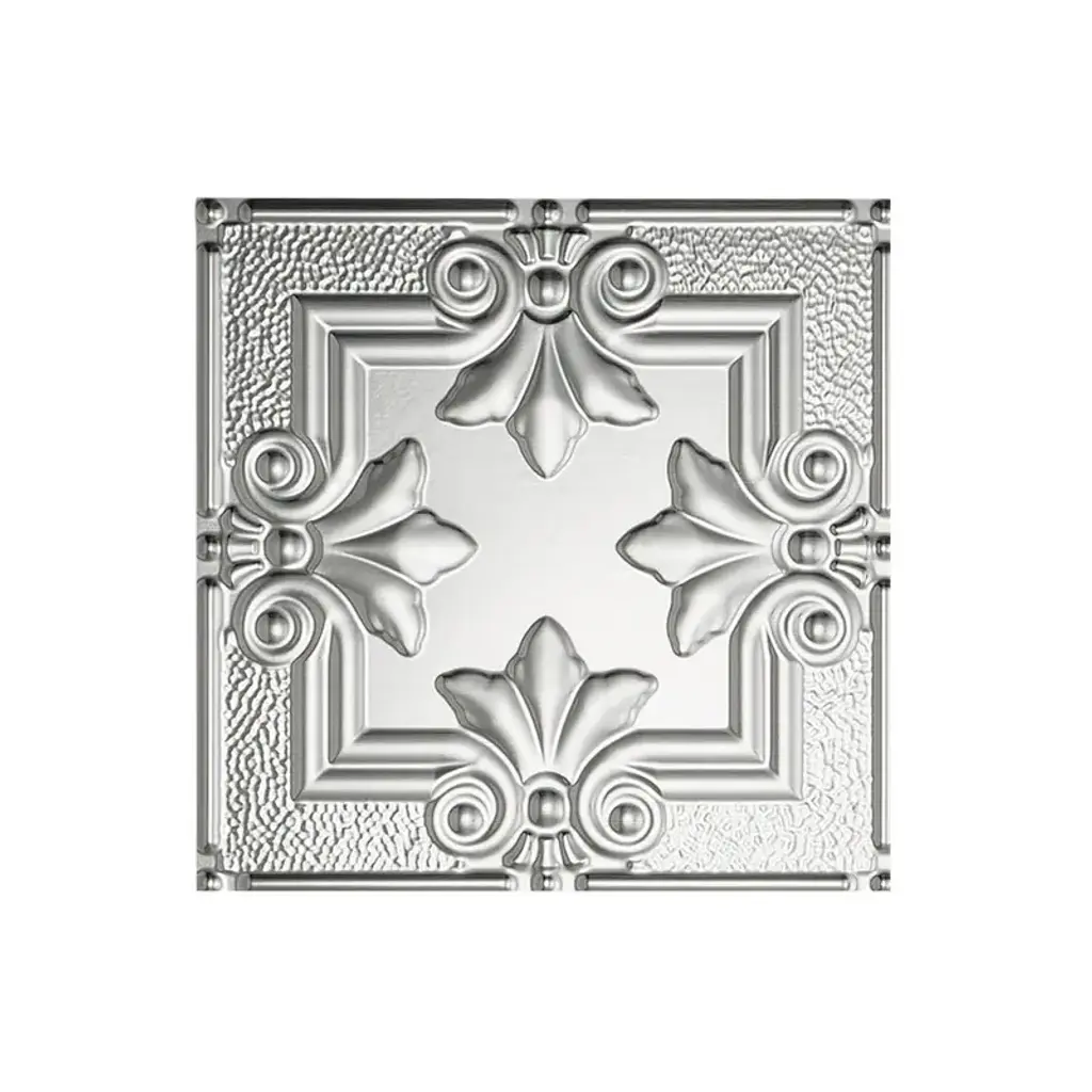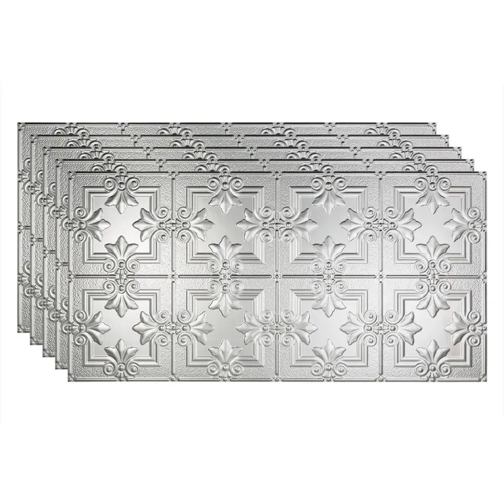 Fasäde Regalia Decorative Vinyl 2Ft X 4Ft Glue Up Ceiling Panel In Brushed Aluminum (5 Pack) - 5 Pack - Brushed Aluminum