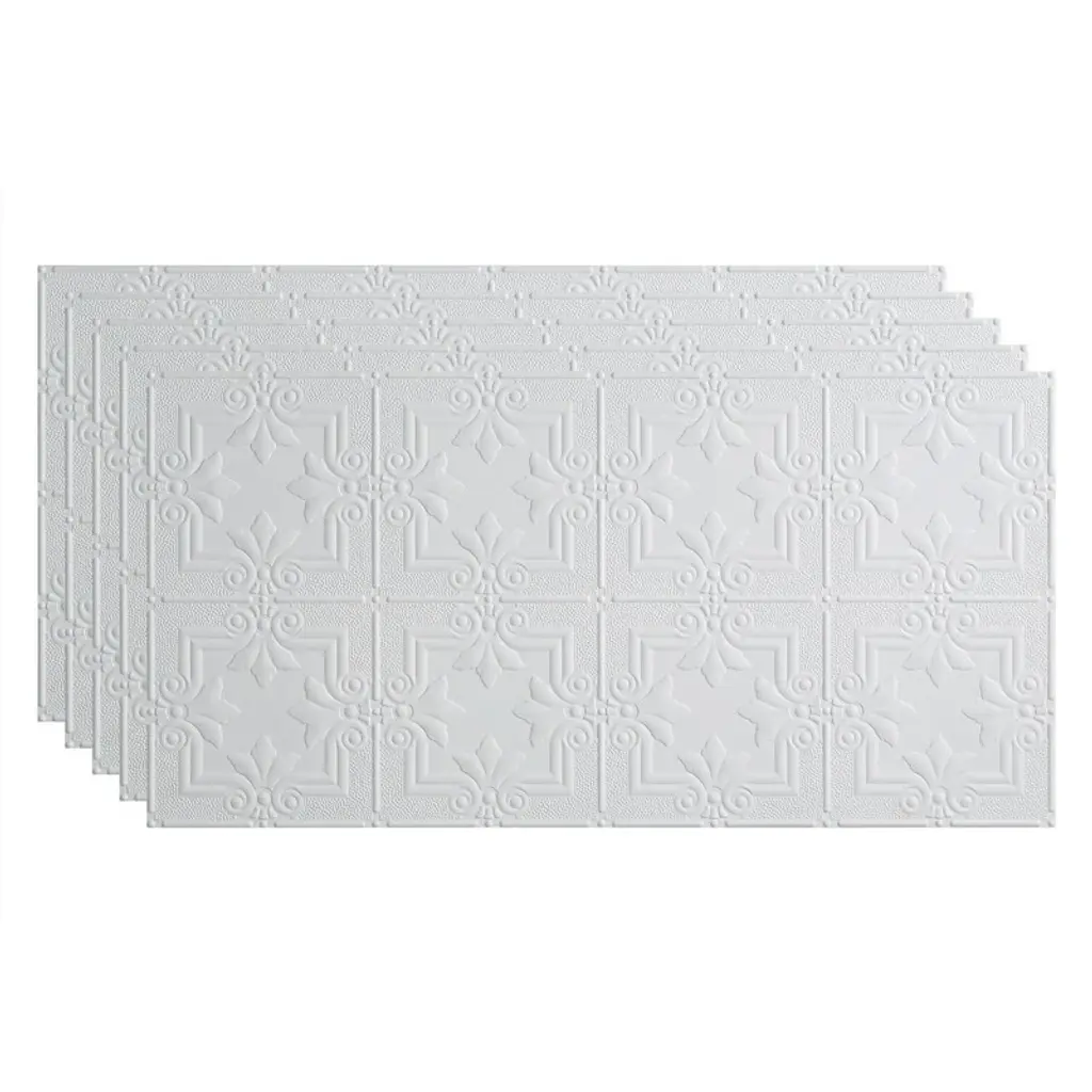 Fasäde Regalia Decorative Vinyl 2Ft X 4Ft Glue Up Ceiling Panel In Matte White (5 Pack) - 5 Pack - Matte White