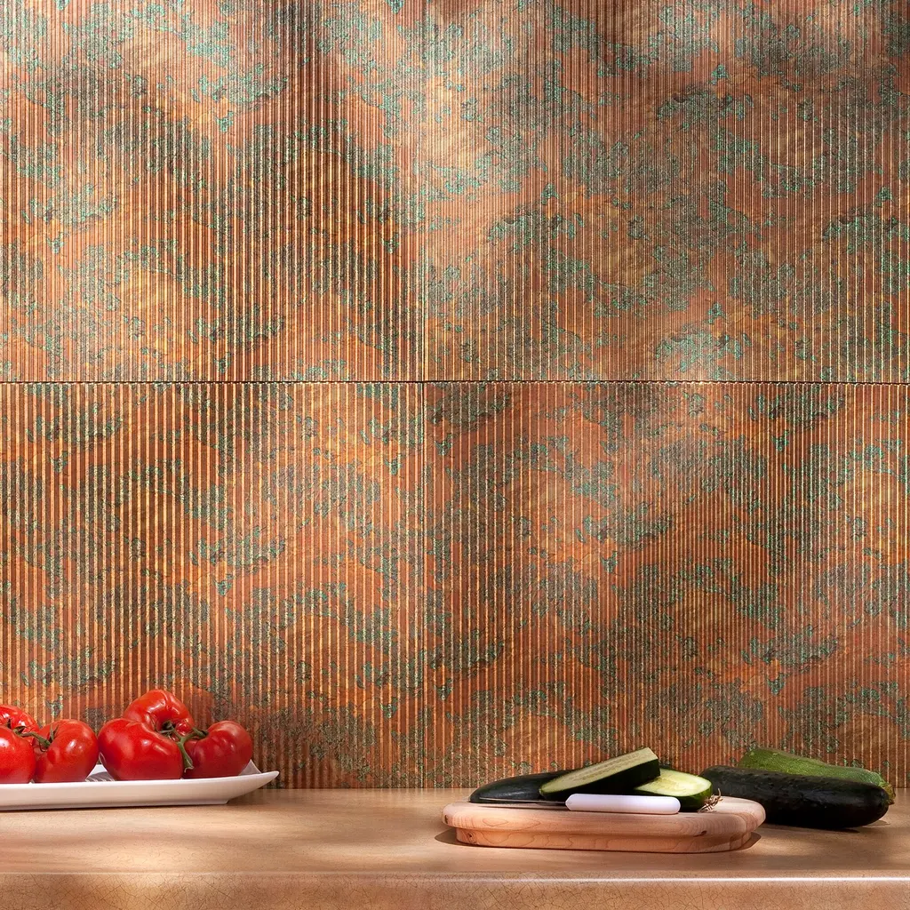 Fasäde Rib Decorative Vinyl Backsplash Panel - 15 Sq Ft Kit - Copper Fantasy