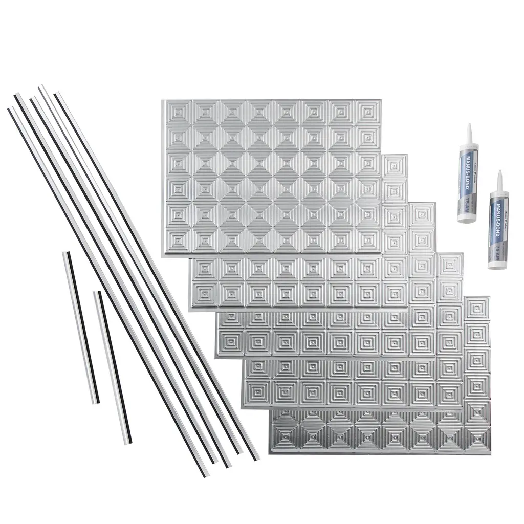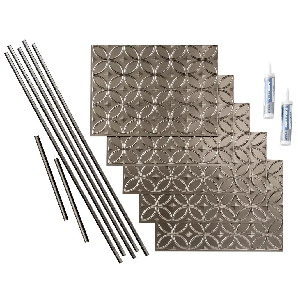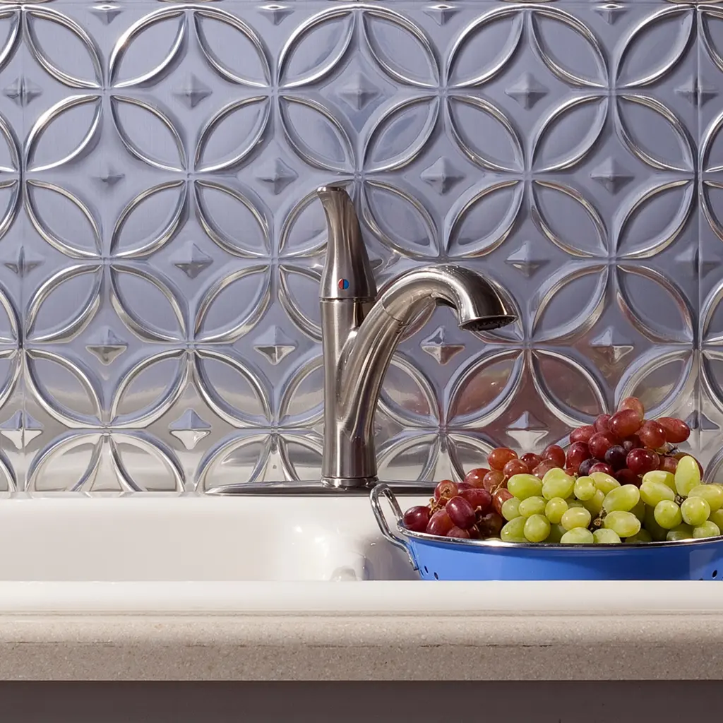 Fasäde Rings Decorative Vinyl Backsplash Panel - 15 Sq Ft Kit - Brushed Aluminum