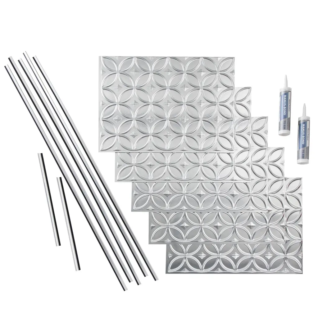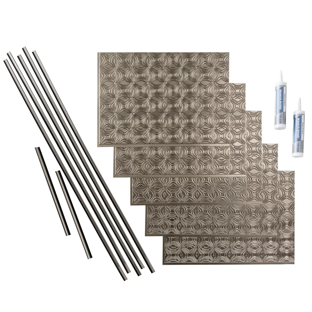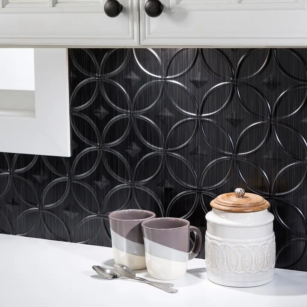 Fasäde Rings Decorative Vinyl Backsplash Panel - 15 Sq Ft Kit - Brushed Onyx