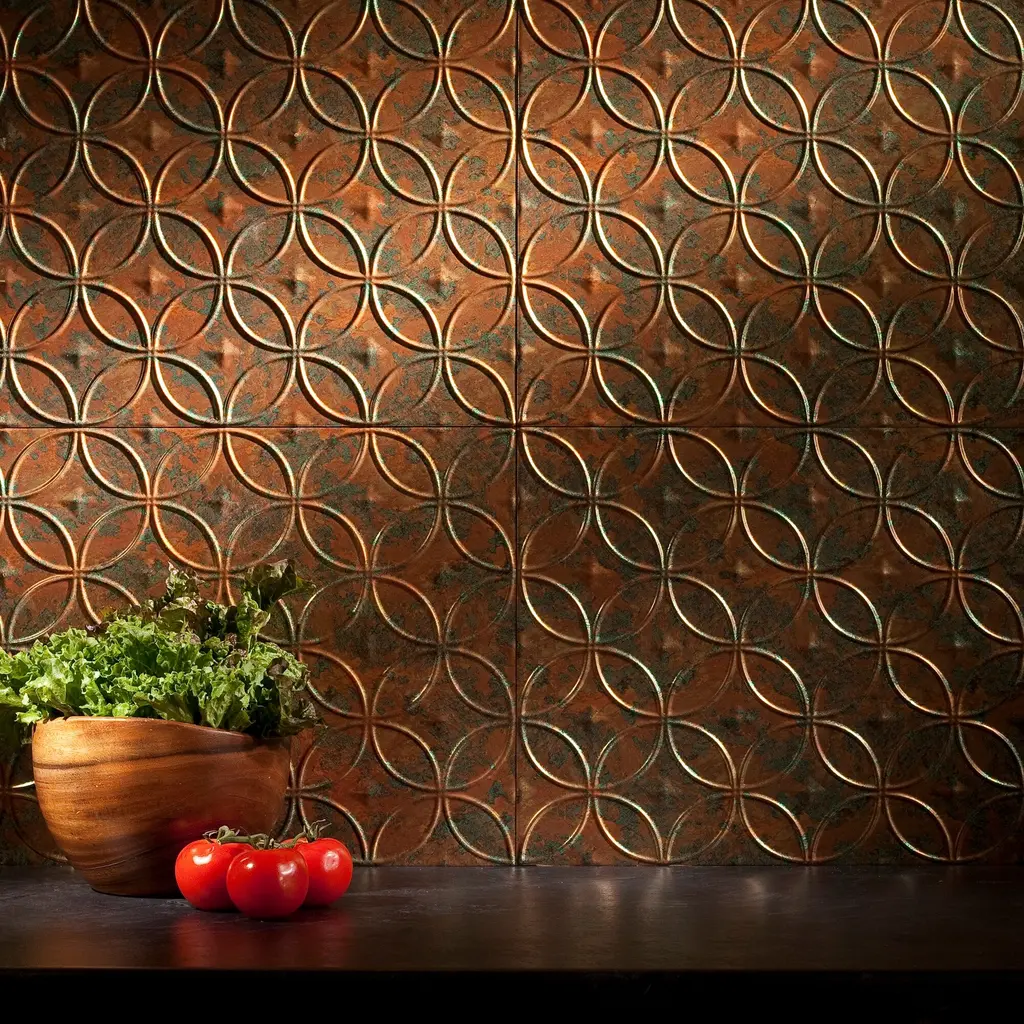Fasäde Rings Decorative Vinyl Backsplash Panel - 15 Sq Ft Kit - Copper Fantasy