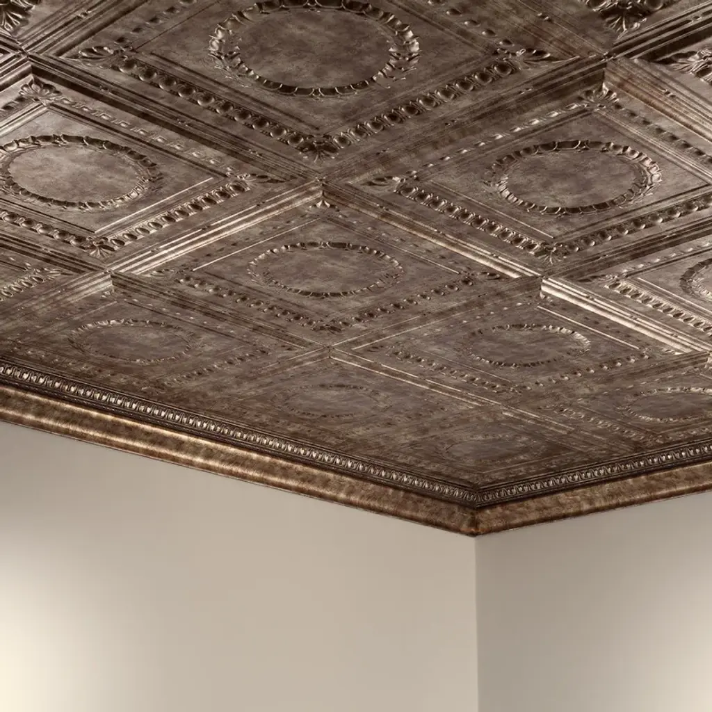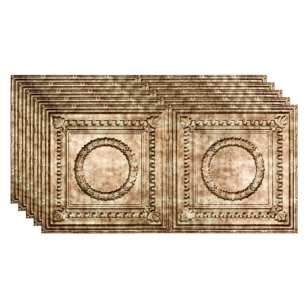 Fasäde Rosette Decorative Vinyl 2Ft X 4Ft Glue Up Ceiling Panel In Bermuda Bronze (5 Pack) - 5 Pack - Bermuda Bronze