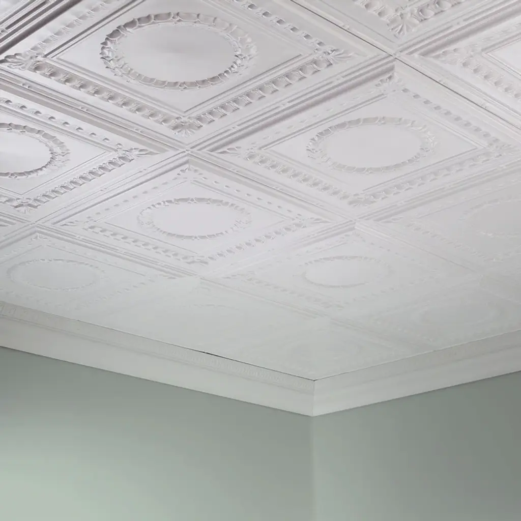 Fasäde Rosette Decorative Vinyl 2Ft X 4Ft Glue Up Ceiling Panel In Gloss White (5 Pack) - 5 Pack - Gloss White