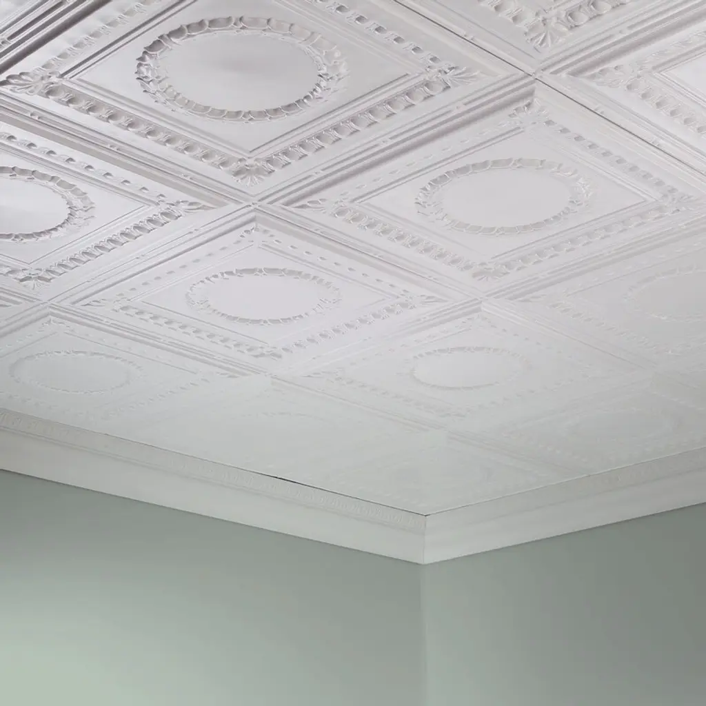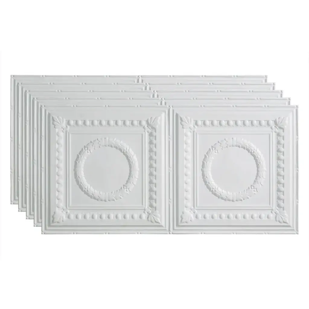 Fasäde Rosette Decorative Vinyl 2Ft X 4Ft Glue Up Ceiling Panel In Matte White (5 Pack) - 5 Pack - Matte White