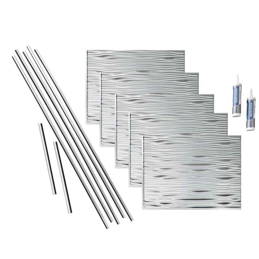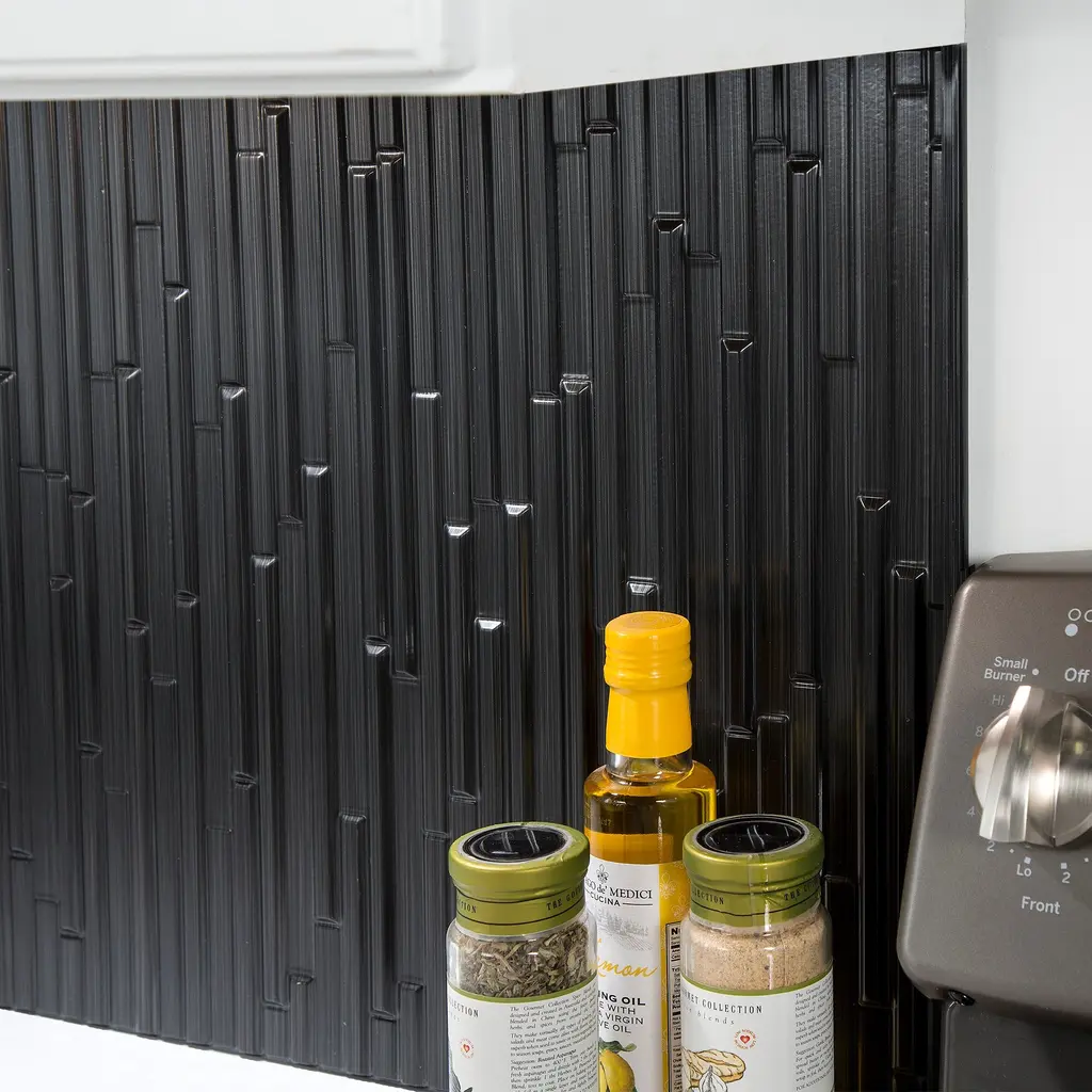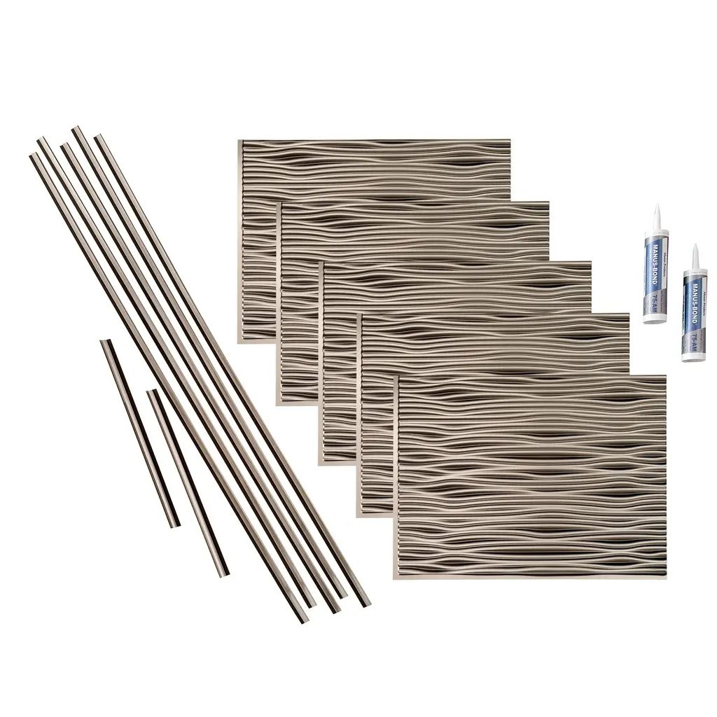 Fasäde Skyline Decorative Vinyl Backsplash Panel - 15 Sq Ft Kit - Brushed Onyx