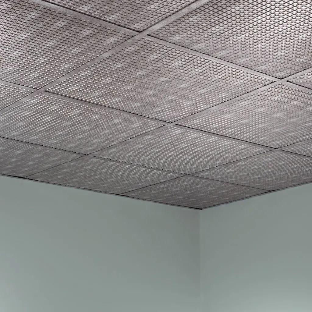 Fasäde Square Decorative Vinyl 2Ft X 2Ft Lay In Ceiling Panel In Crosshatch Silver (5 Pack) - 5 Pack - Crosshatch Silver