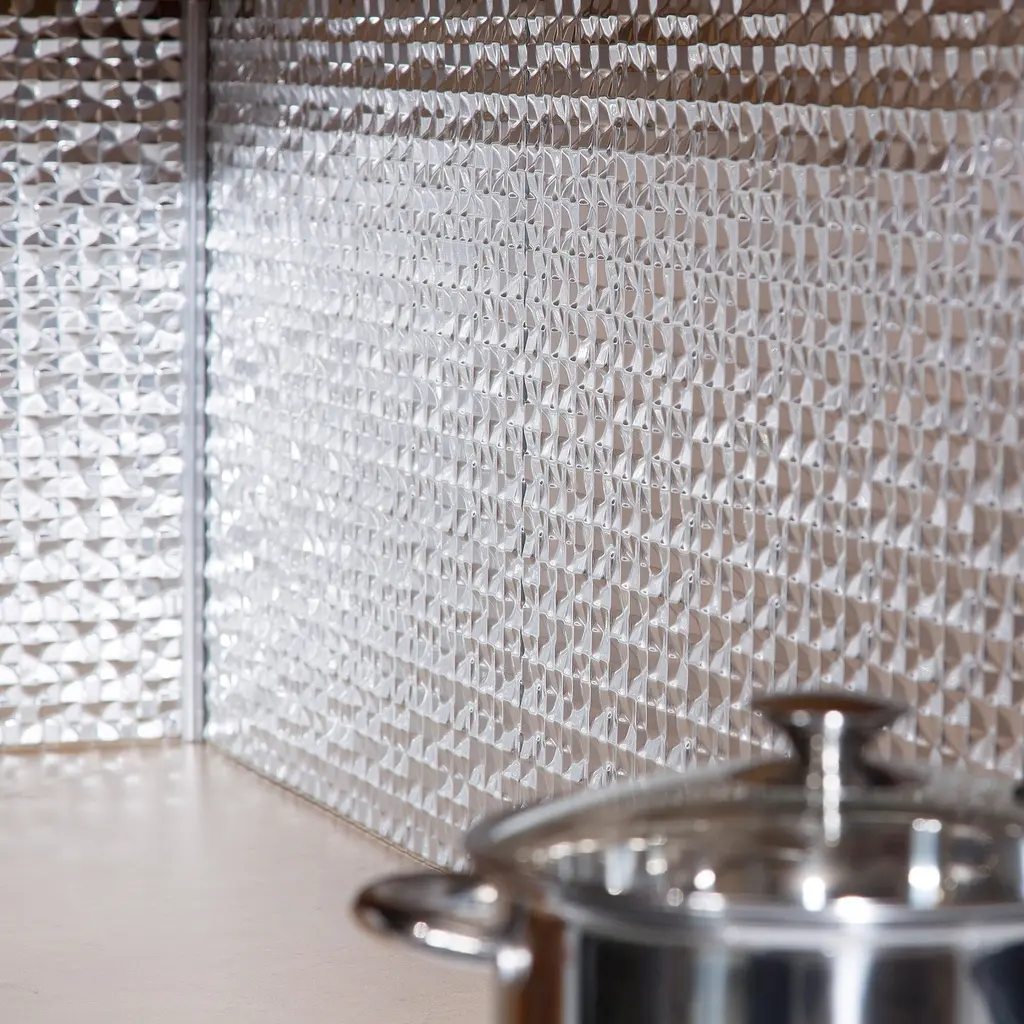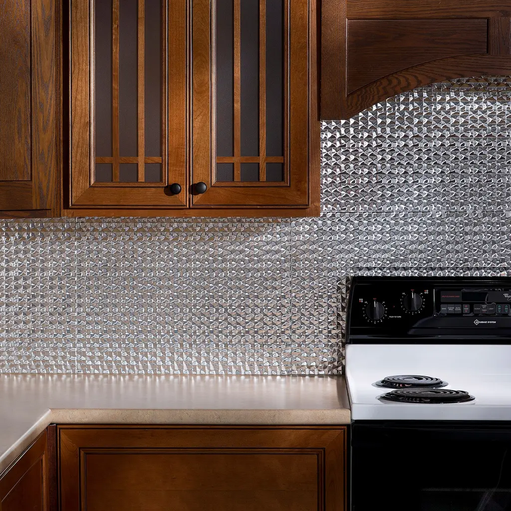 Fasäde Terrain Decorative Vinyl Backsplash Panel - 15 Square Foot Kit - Brushed Aluminum