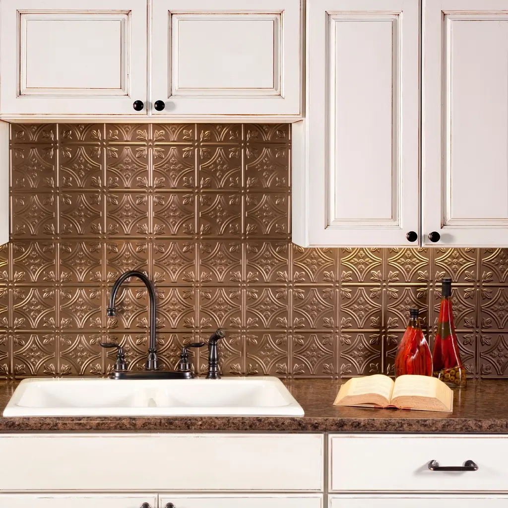 Fasäde Traditional Style 1 Decorative Vinyl Backsplash Panel - 15 Sq Ft Kit - Argent Bronze