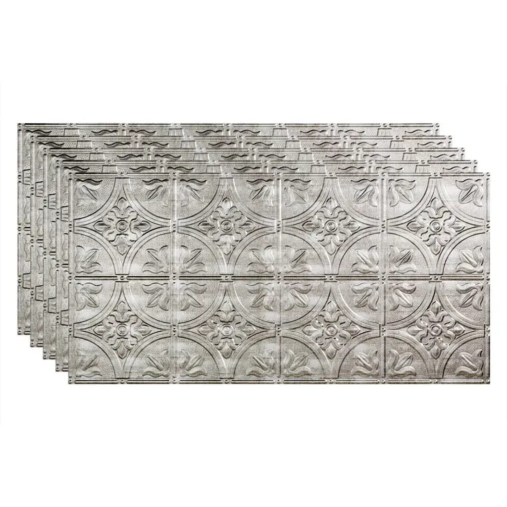 Fasäde Traditional Style 2 Decorative Vinyl 2Ft X 4Ft Glue Up Ceiling Panel In Crosshatch Silver (5 Pack) - 5 Pack - Crosshatch Silver