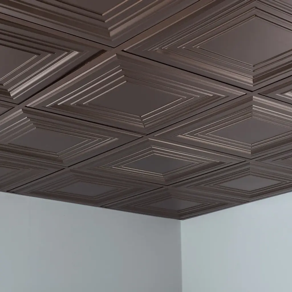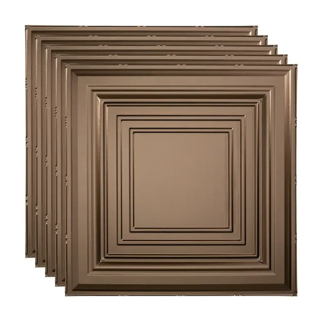 Fasäde Traditional Style 3 Decorative Vinyl 2Ft X 2Ft Lay In Ceiling Panel In Argent Bronze (5 Pack) - 5 Pack