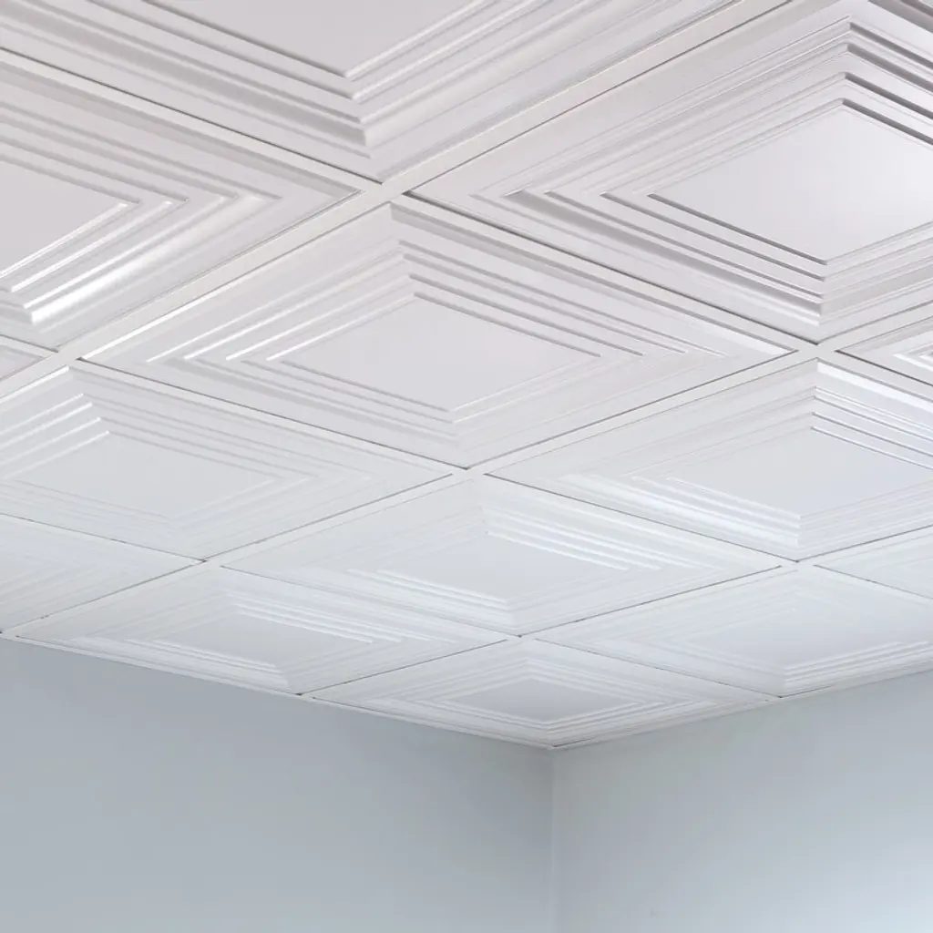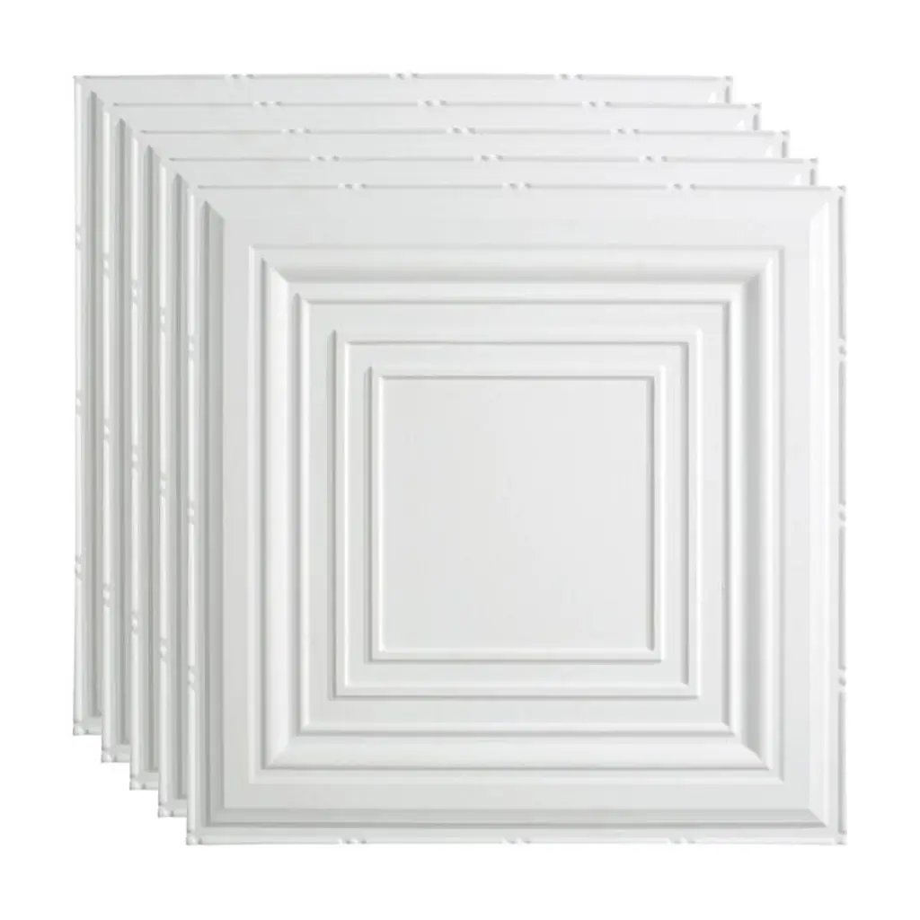 Fasäde Traditional Style 3 Decorative Vinyl 2Ft X 2Ft Lay In Ceiling Panel In Gloss White (5 Pack) - 5 Pack - Gloss White