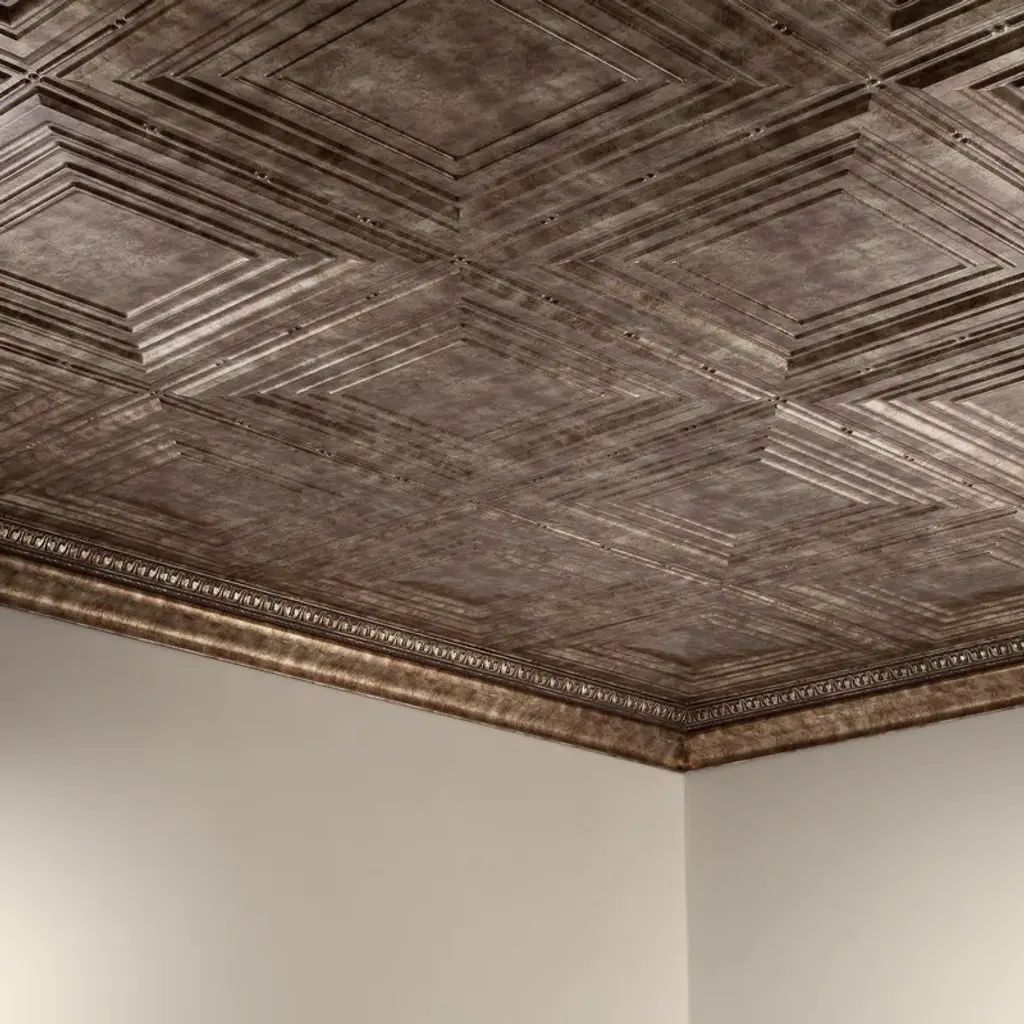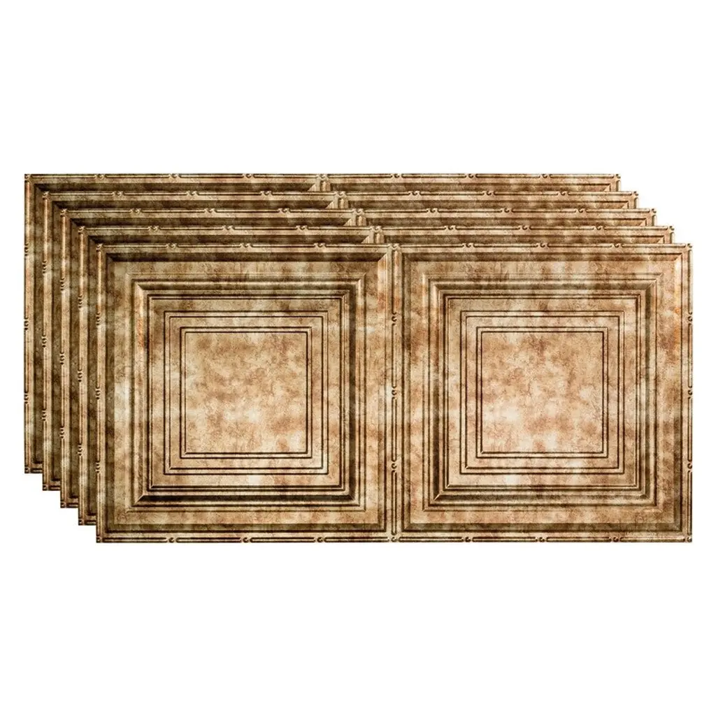Fasäde Traditional Style 3 Decorative Vinyl 2Ft X 4Ft Glue Up Ceiling Panel In Bermuda Bronze (5 Pack) - 5 Pack - Bermuda Bronze
