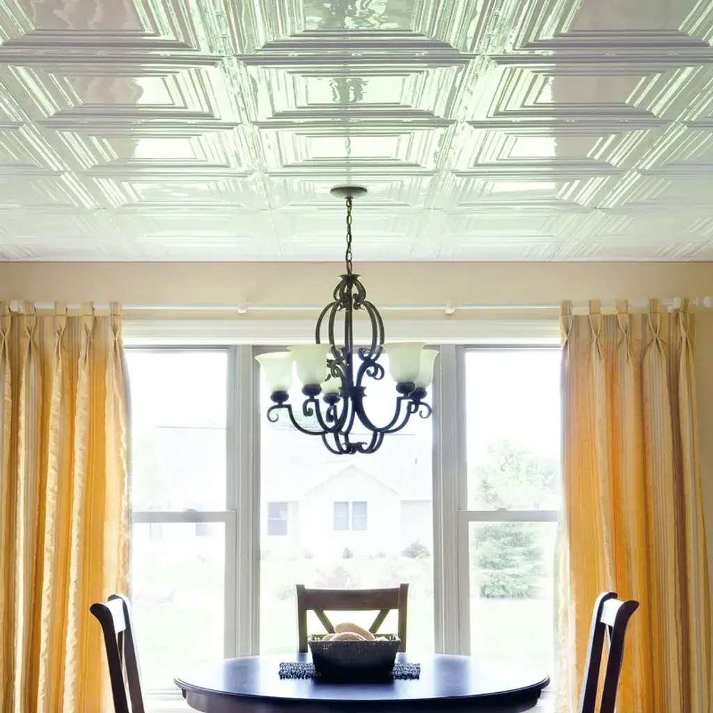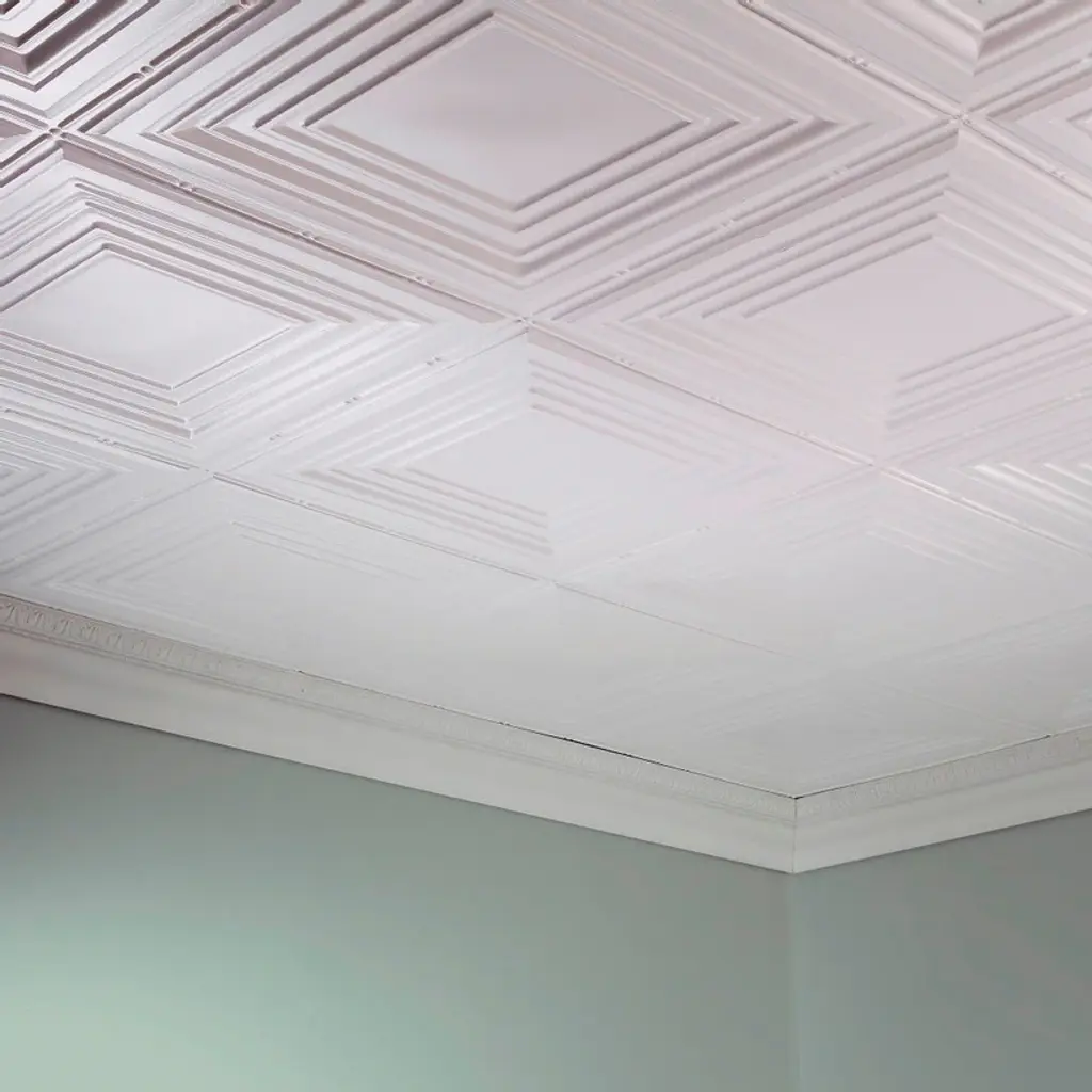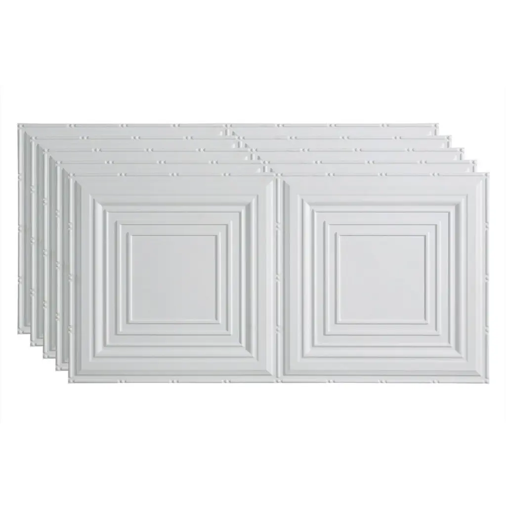 Fasäde Traditional Style 3 Decorative Vinyl 2Ft X 4Ft Glue Up Ceiling Panel In Matte White (5 Pack) - 5 Pack - Matte White