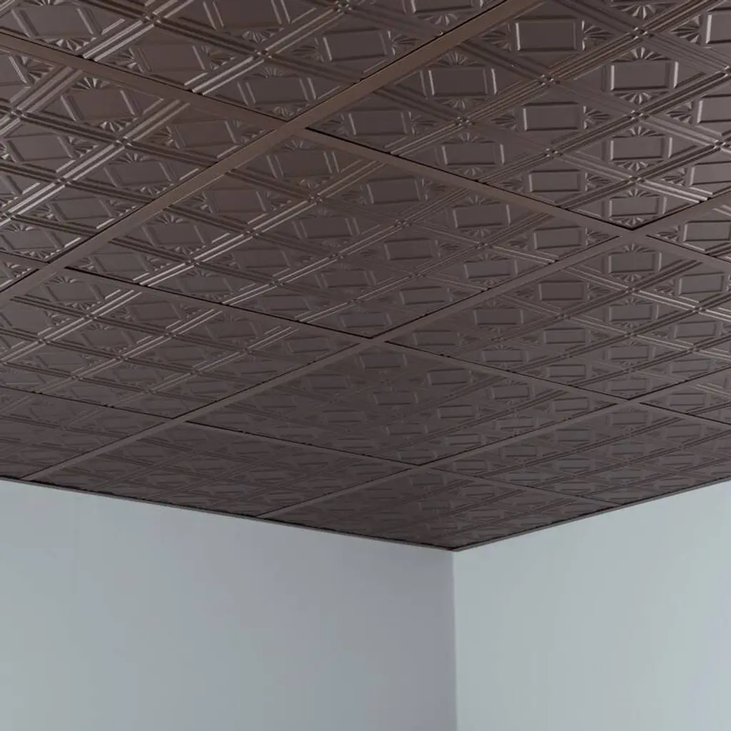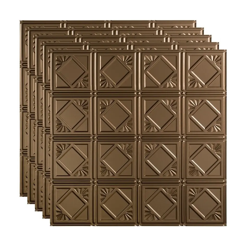 Fasäde Traditional Style 4 Decorative Vinyl 2Ft X 2Ft Lay In Ceiling Panel In Argent Bronze (5 Pack) - 5 Pack - Argent Bronze