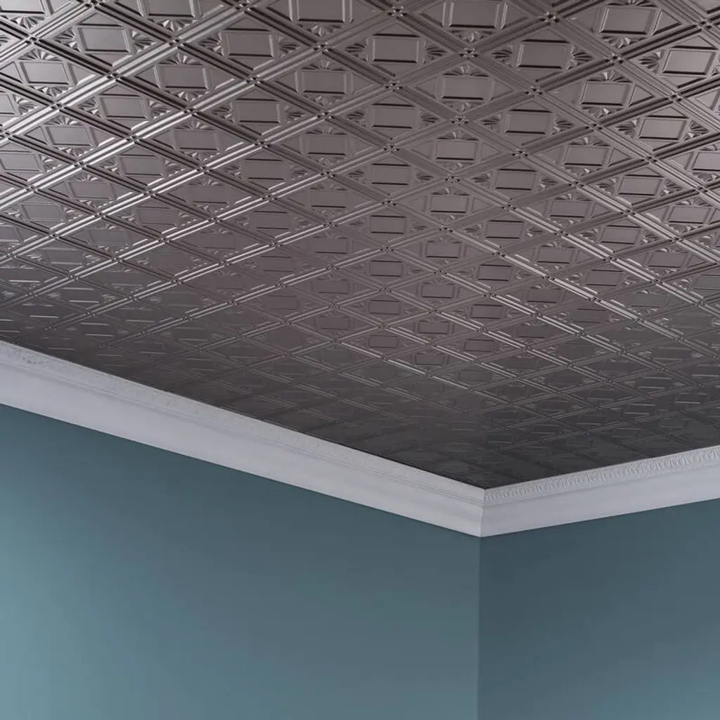 Fasäde Traditional Style 4 Decorative Vinyl 2Ft X 4Ft Glue Up Ceiling Panel In Brushed Nickel (5 Pack) - 5 Pack - Brushed Nickel