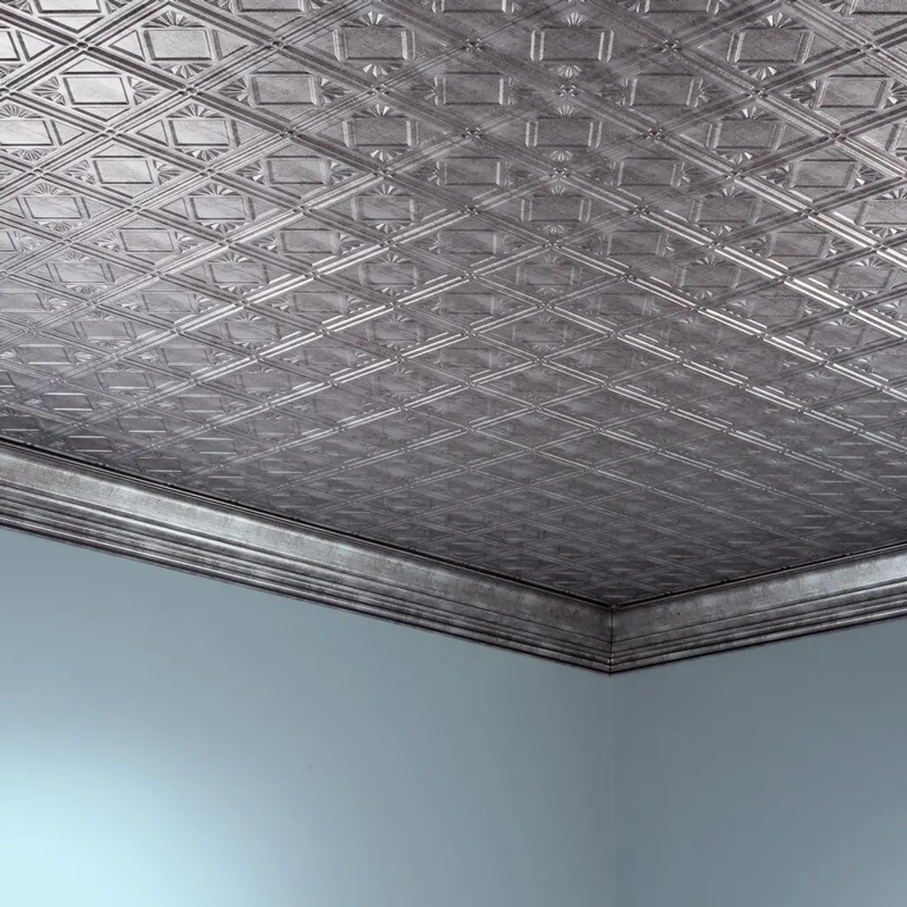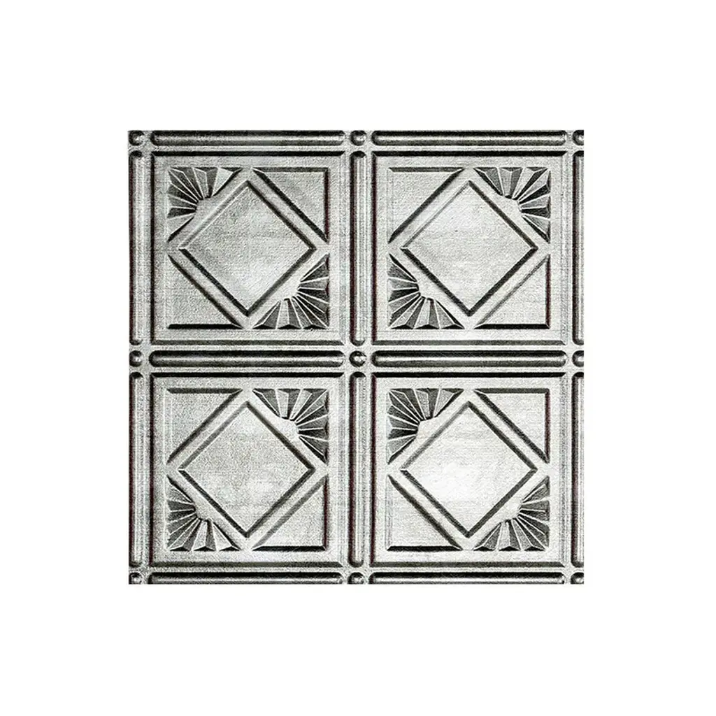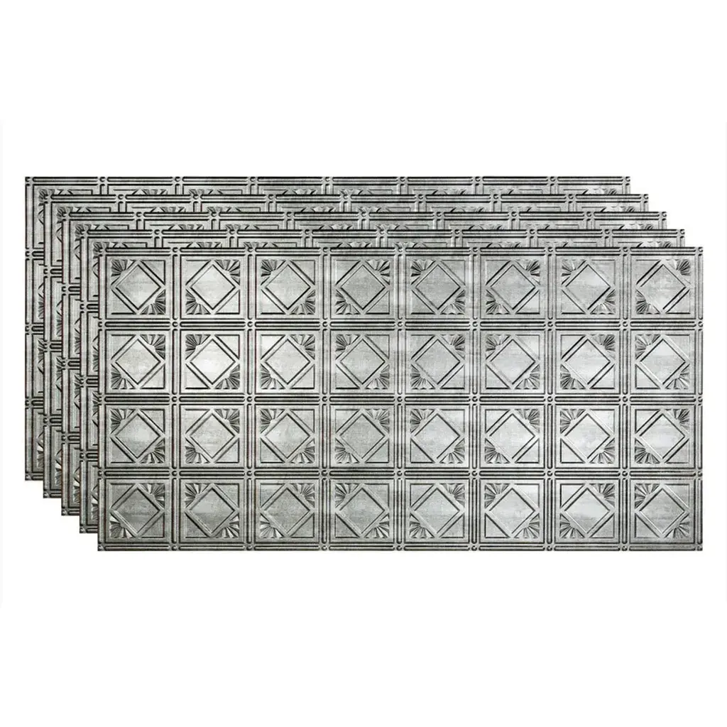Fasäde Traditional Style 4 Decorative Vinyl 2Ft X 4Ft Glue Up Ceiling Panel In Crosshatch Silver (5 Pack) - 5 Pack - Crosshatch Silver