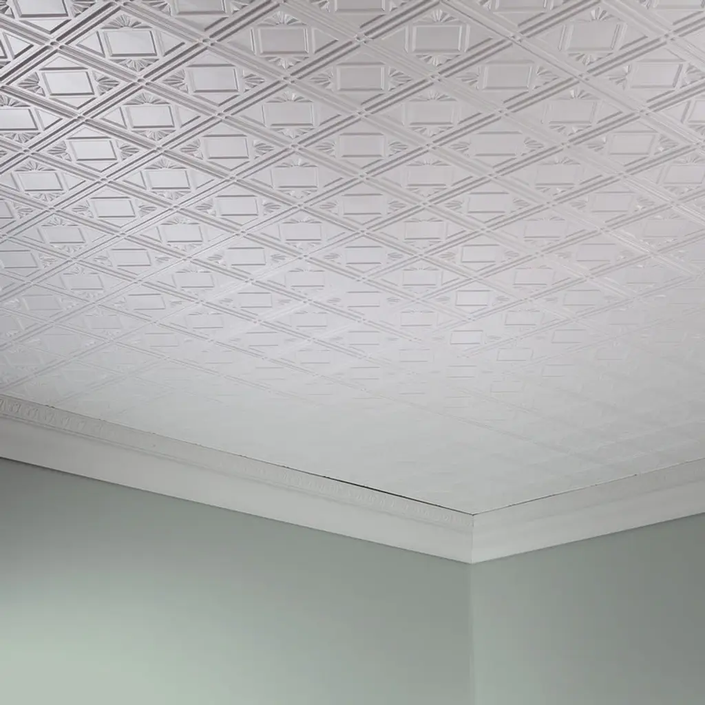 Fasäde Traditional Style 4 Decorative Vinyl 2Ft X 4Ft Glue Up Ceiling Panel In Matte White (5 Pack) - 5 Pack - Matte White