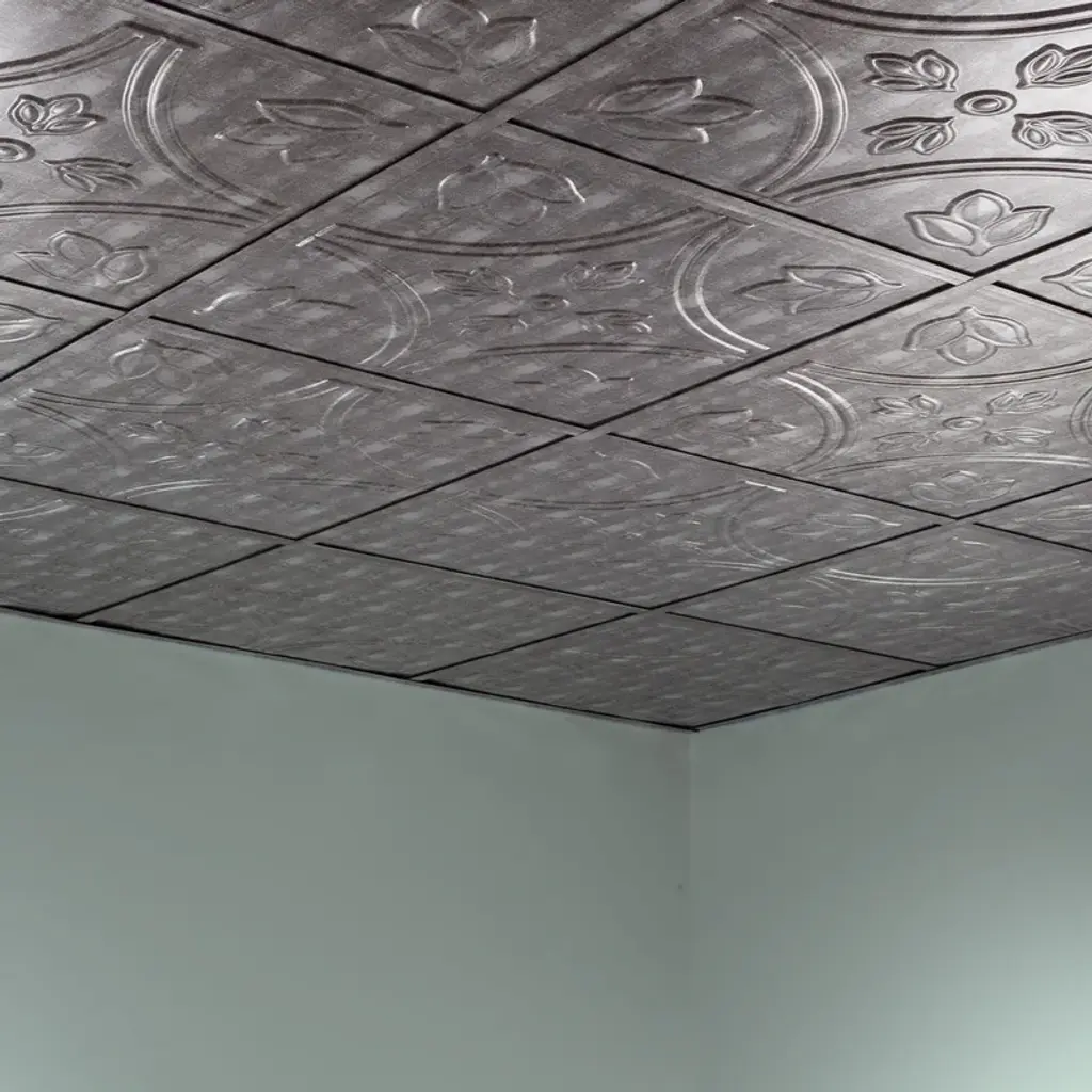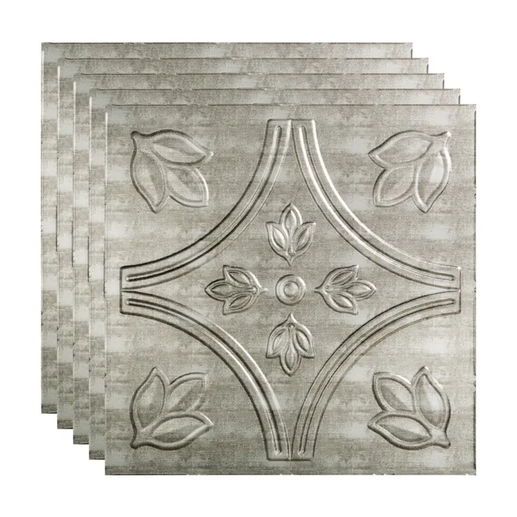 Fasäde Traditional Style 5 Decorative Vinyl 2Ft X 2Ft Lay In Ceiling Panel In Crosshatch Silver (5 Pack) - 5 Pack - Crosshatch Silver
